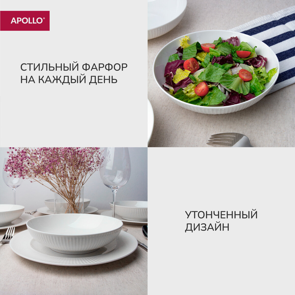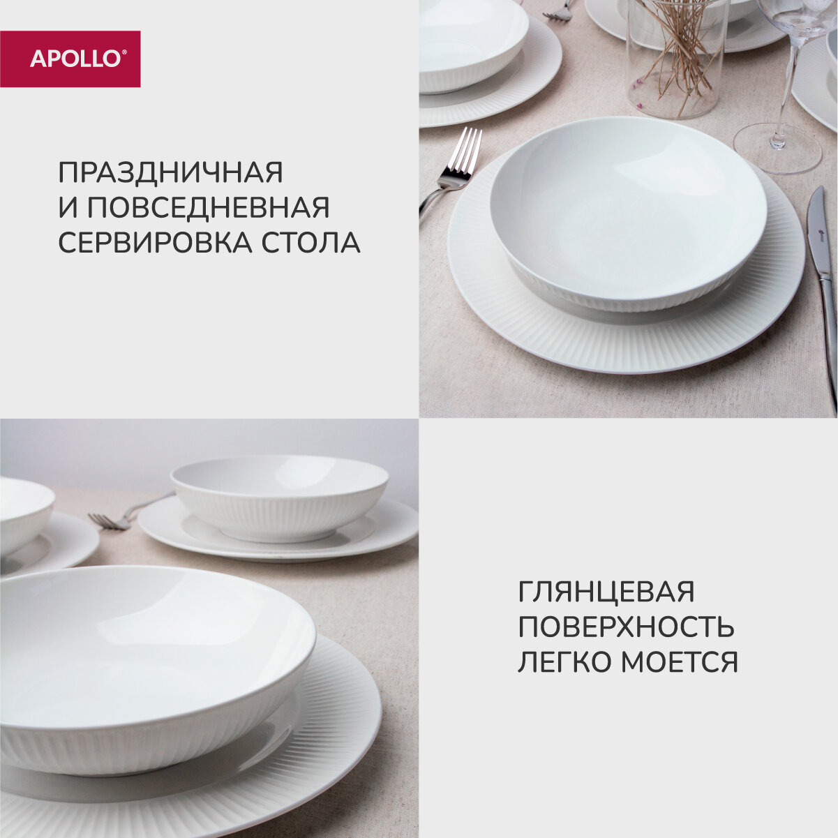 Тарелка обеденная глубокая Apollo "Raffinato", набор тарелок 4 предмета, салатник объём 800 мл интересное: