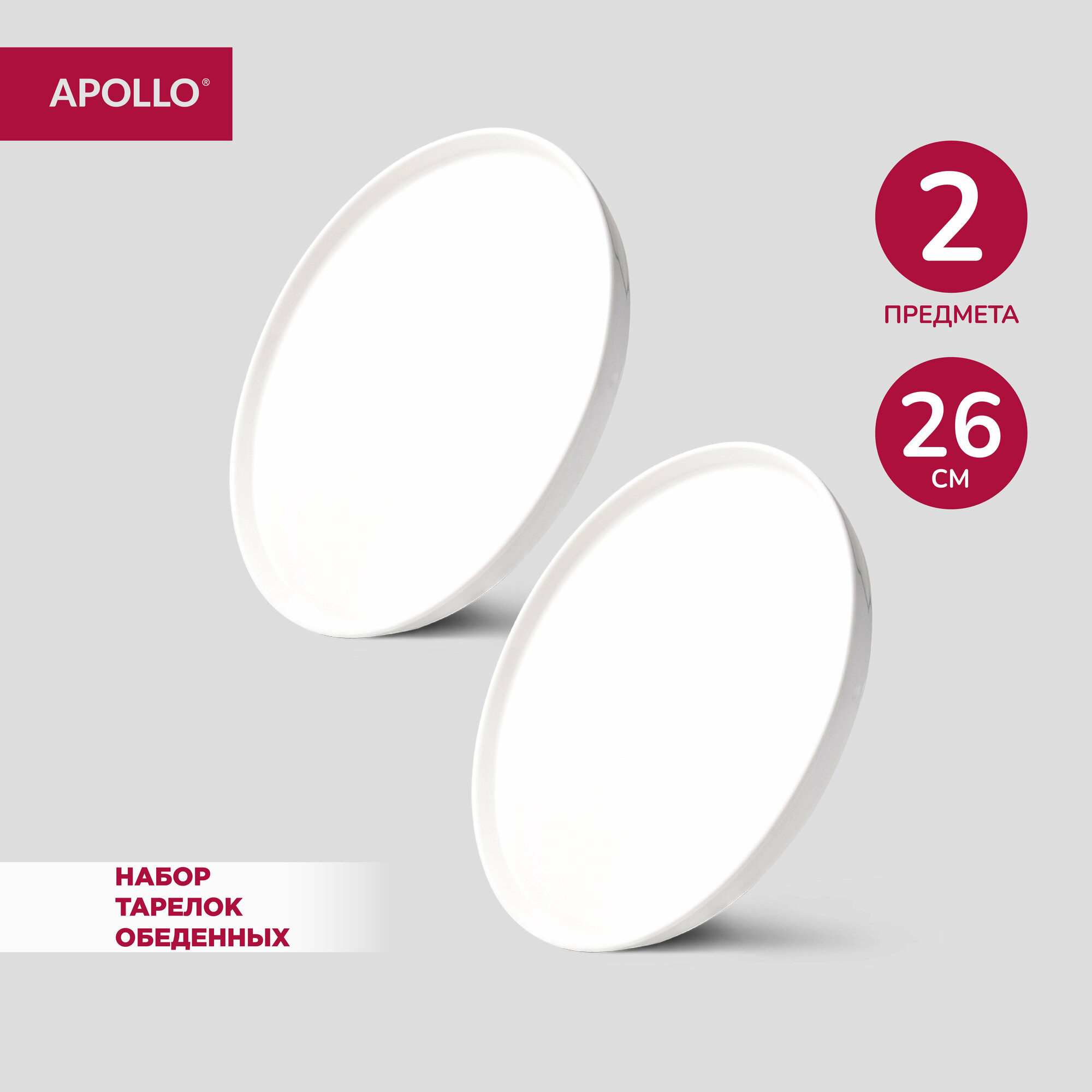 Тарелка обеденная сервировочная с бортиком Apollo "Blanco" 26 см, 2 штуки