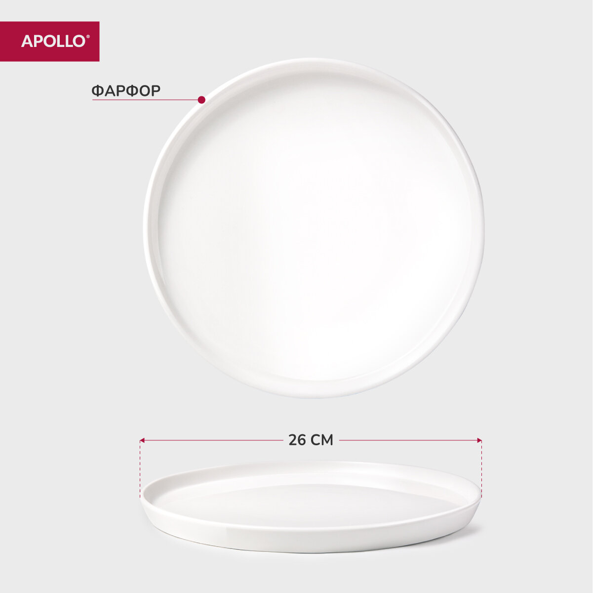 Купить Тарелка обеденная сервировочная из костяного фарфора с бортиком APOLLO "Blanco" 26 см, 2 штуки