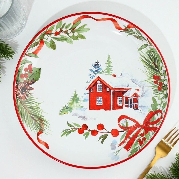 Купить Тарелка "Новогодняя сказка" красная, 25,5 см