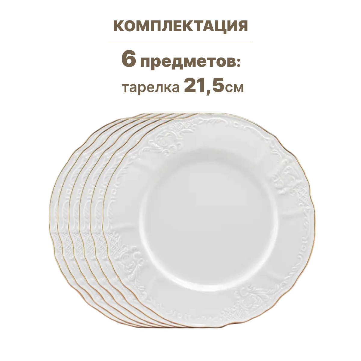 Набор тарелок на 6 персон Lenardi Maria Gold, из фарфора, 21,5 см