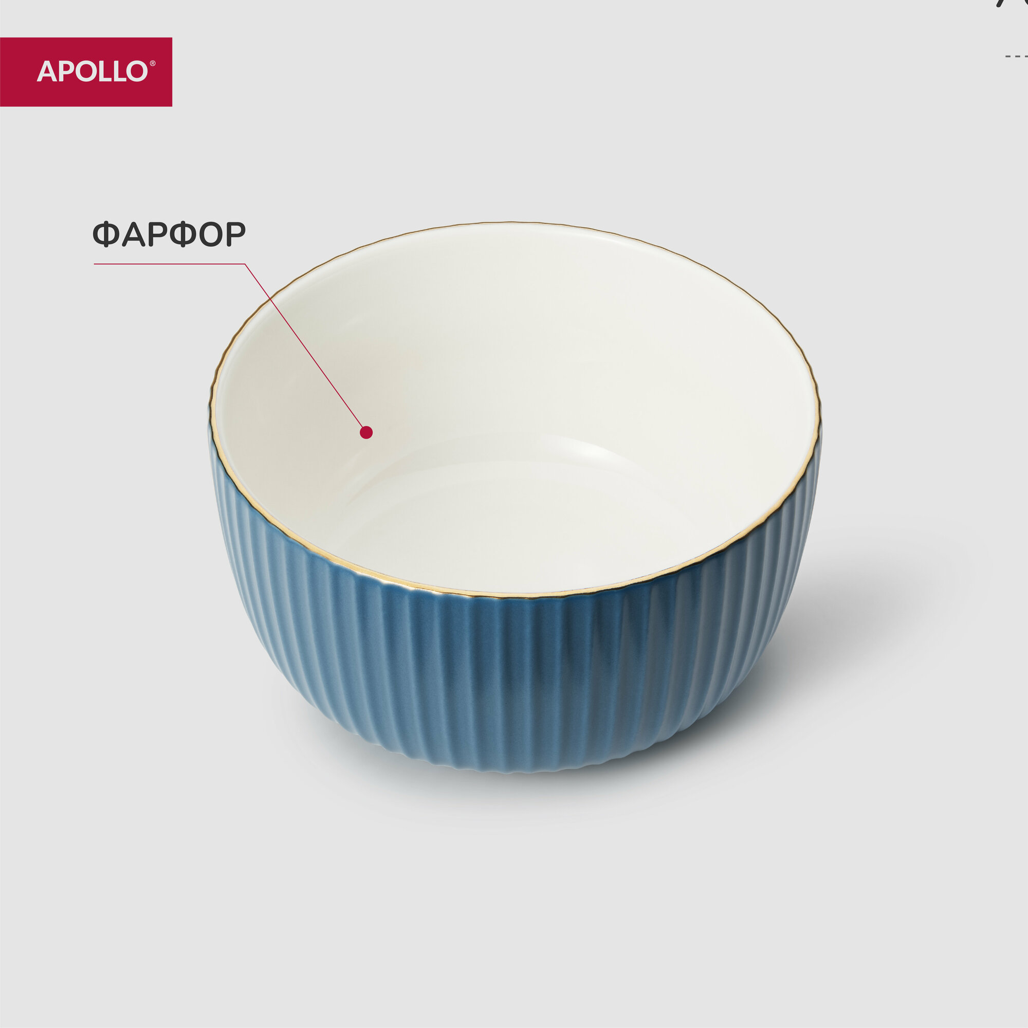 Тарелка глубокая, столовая, суповая, фарфоровая. Миска, пиала, салатник 600 мл APOLLO "Matt" синий интересное: