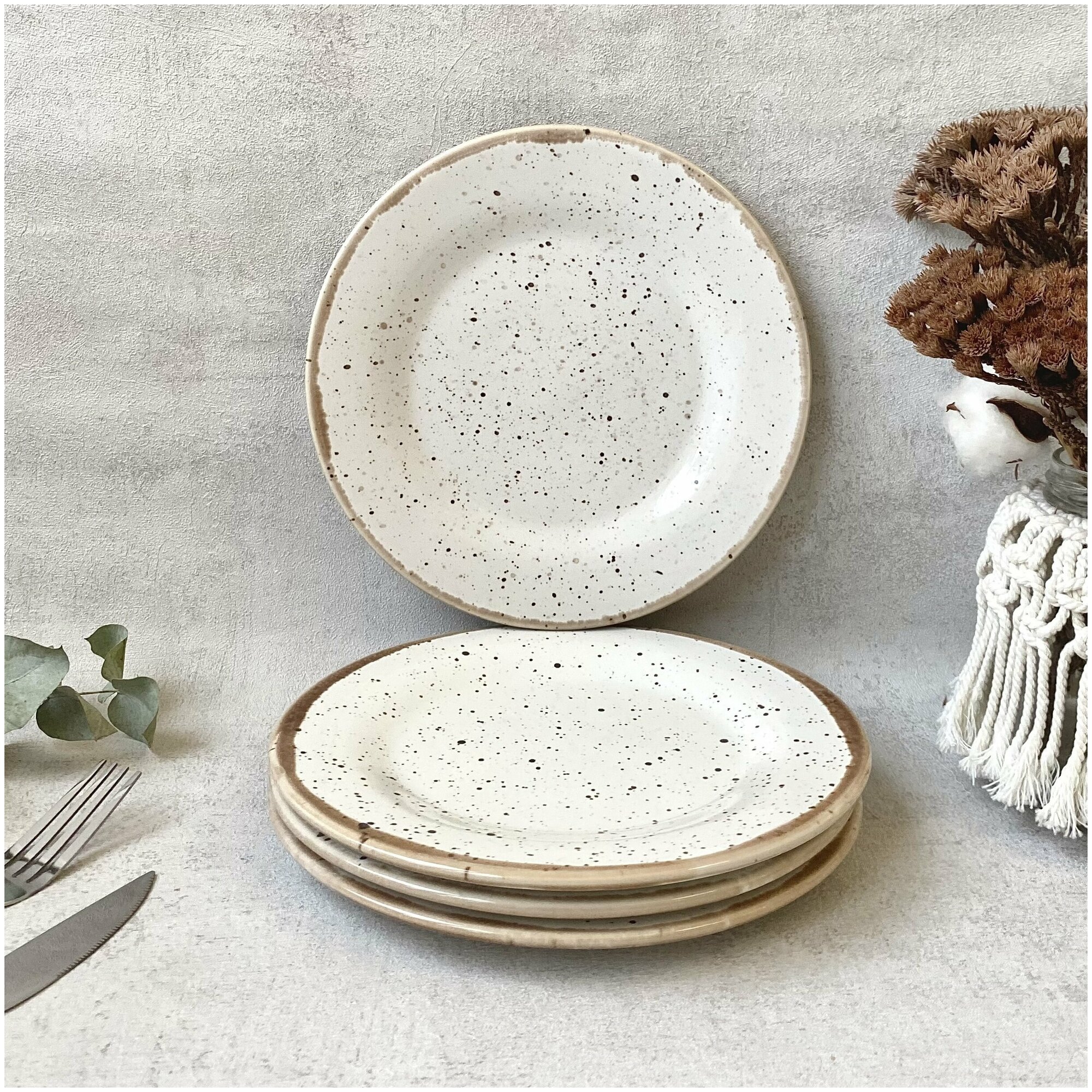 Набор тарелок керамических, 4 шт, диаметр 20 см, "Пунто-Бьянка"