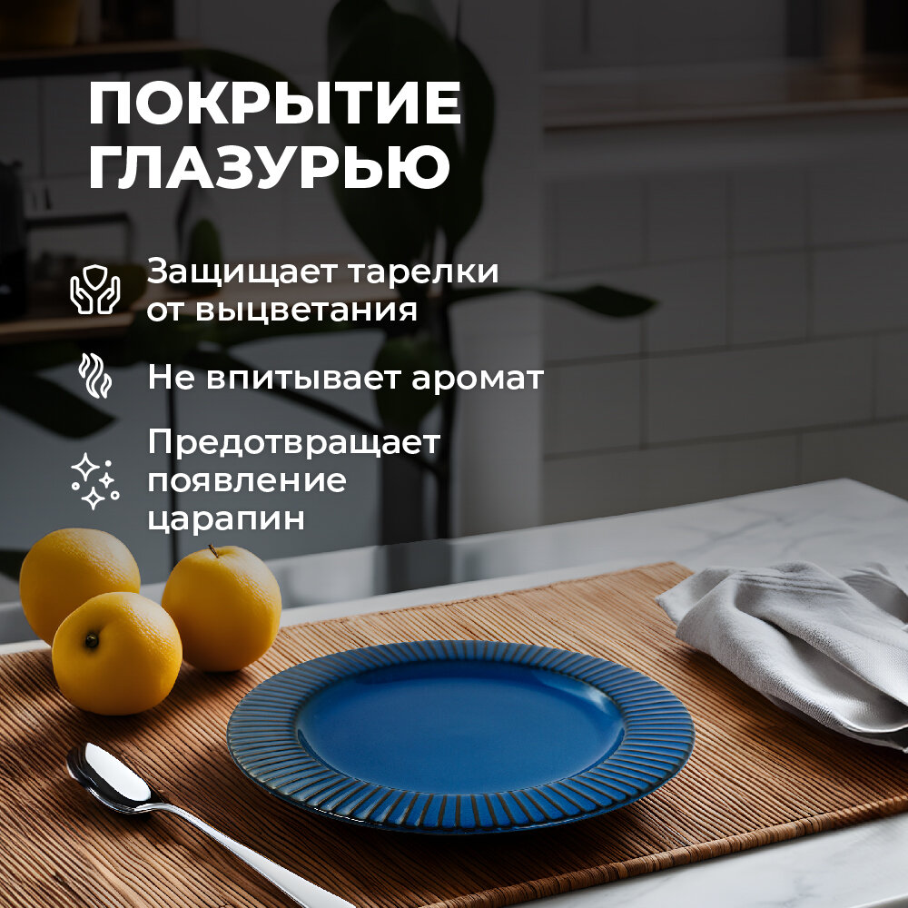 Тарелки набор из жаропрочной керамики Синие Грани 27 см 4 шт. обеденные интересное: