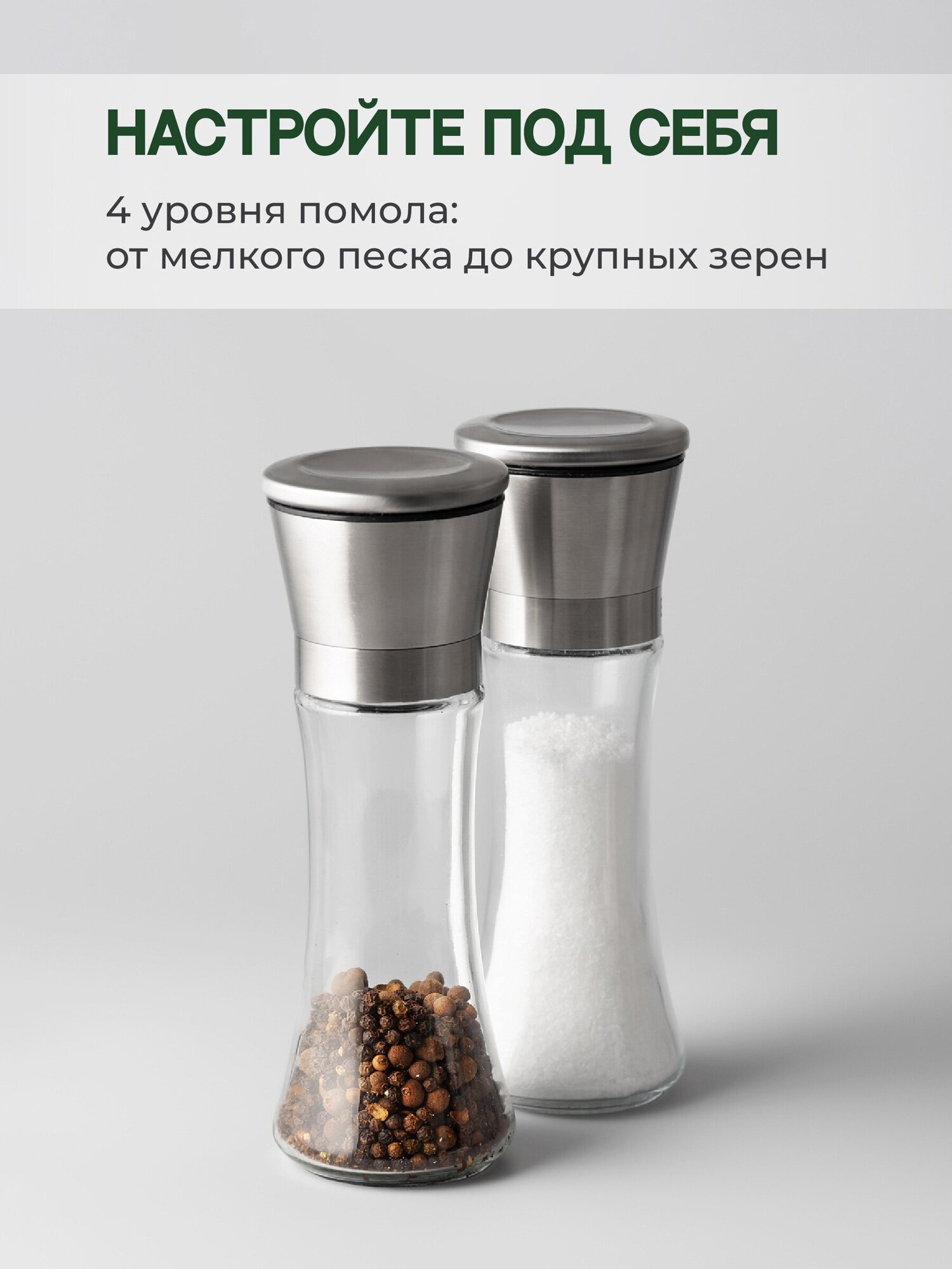 Прозрачный набор мельниц для специй, Shiny Kitchen, Мельницы для специй ручные/ Перцемолки механические, 2 шт, 180 мл интересное: