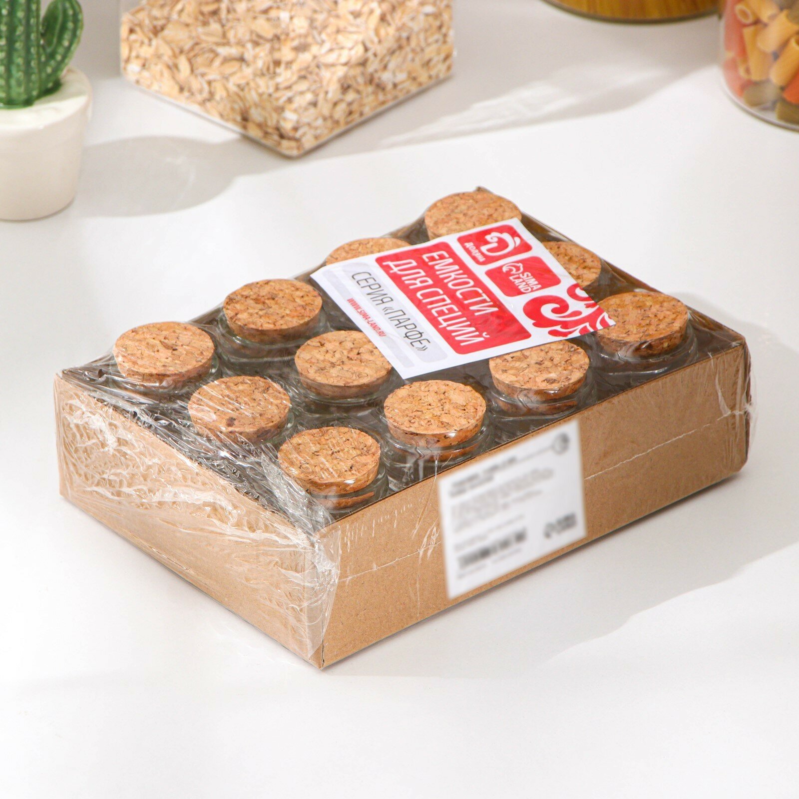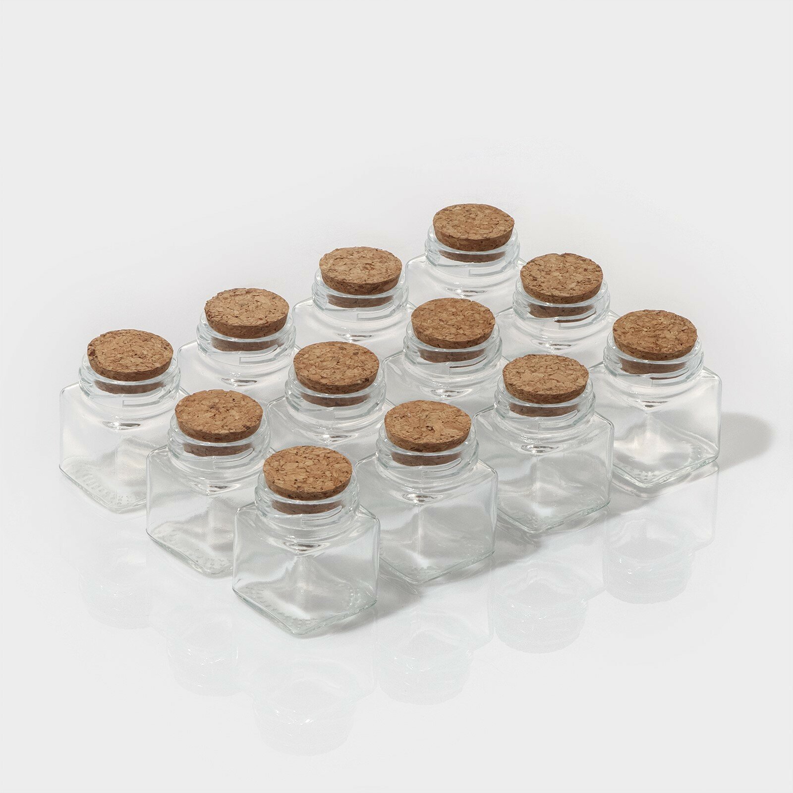 Купить Набор стеклянных баночек для сыпучих продуктов с пробковой крышкой Доляна «Парфе. Квадрат», 70 мл, 4,5×5,4 см, 12 шт