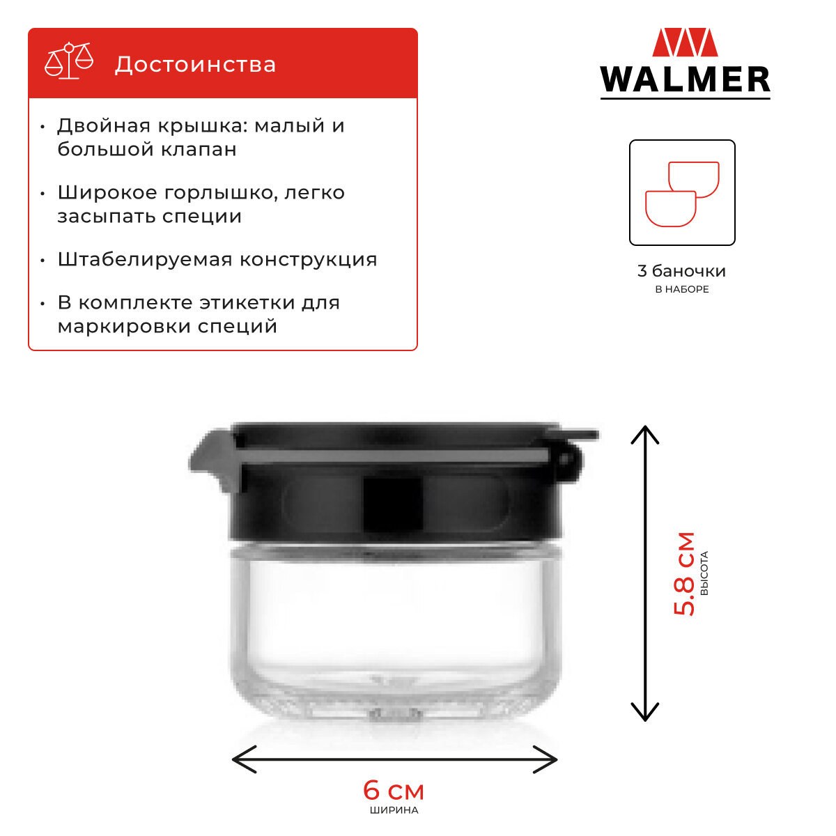 Набор банок WALMER Dual 3шт. 0,2л для специй с двойной крышкой стекло, пластик