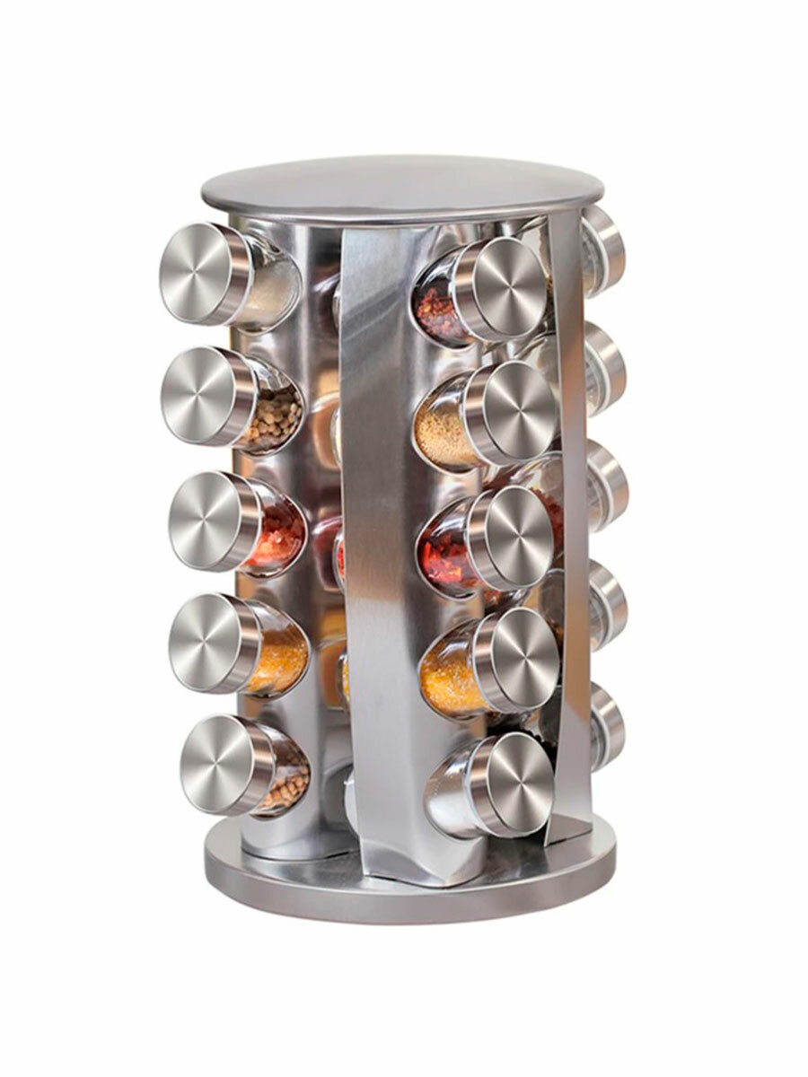Купить Набор баночек для специй, банки для хранения приправ на вращающейся подставке, 20 шт, серебряный