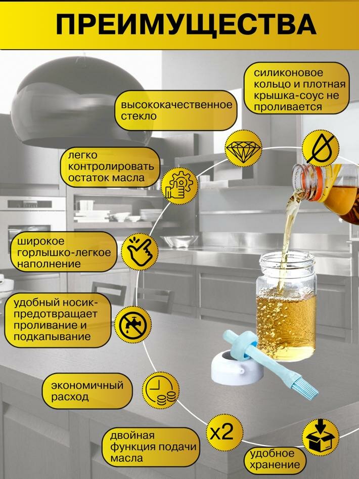 | Дополнительная информация | Каплеуловитель, дозатор пипетка, бутылочка для масла, мерная шкала, можно мыть в посудомойке, толстое стекло. |