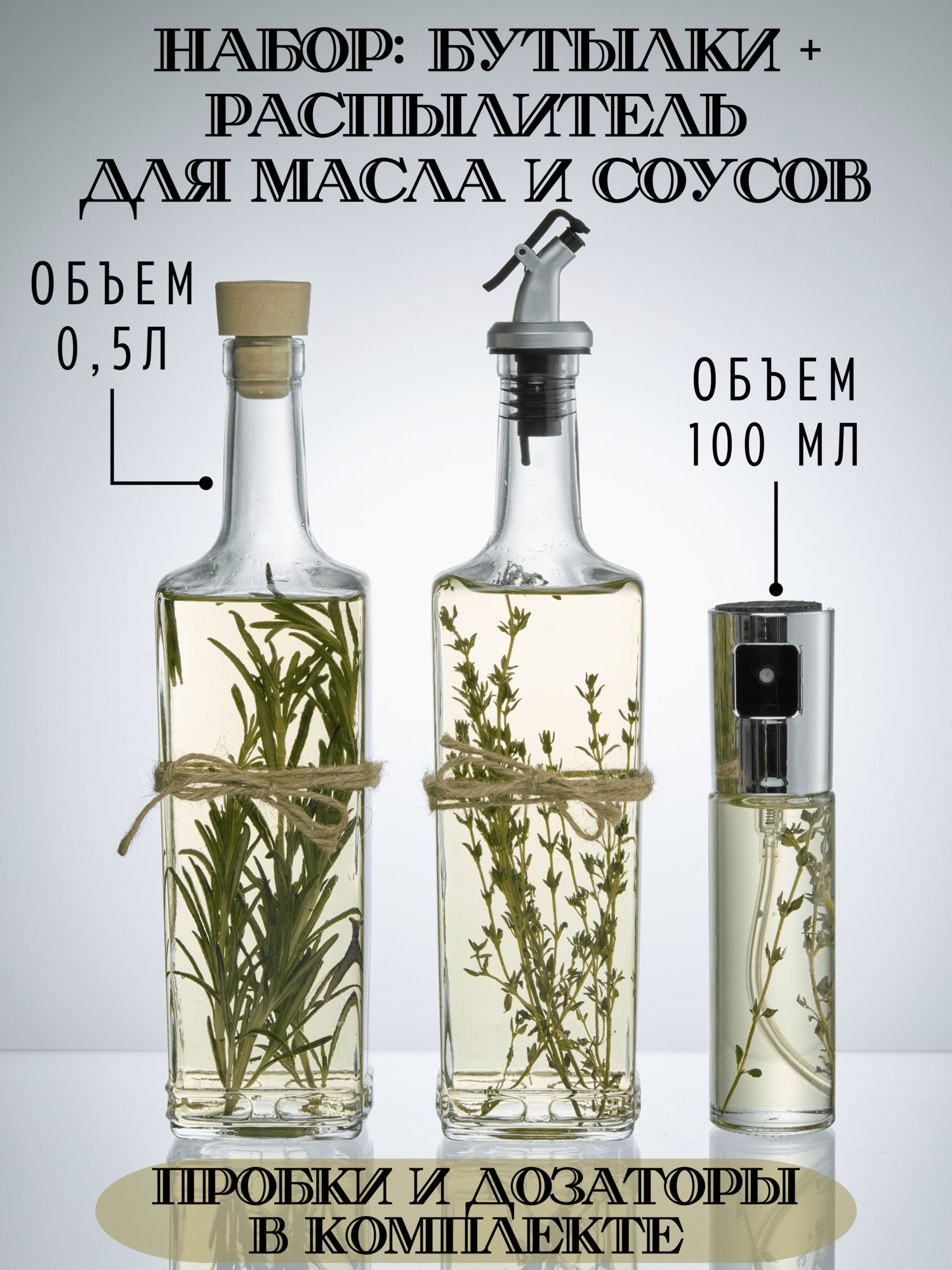 Набор бутылок для масла и специй с дозатором и распылителем интересное: