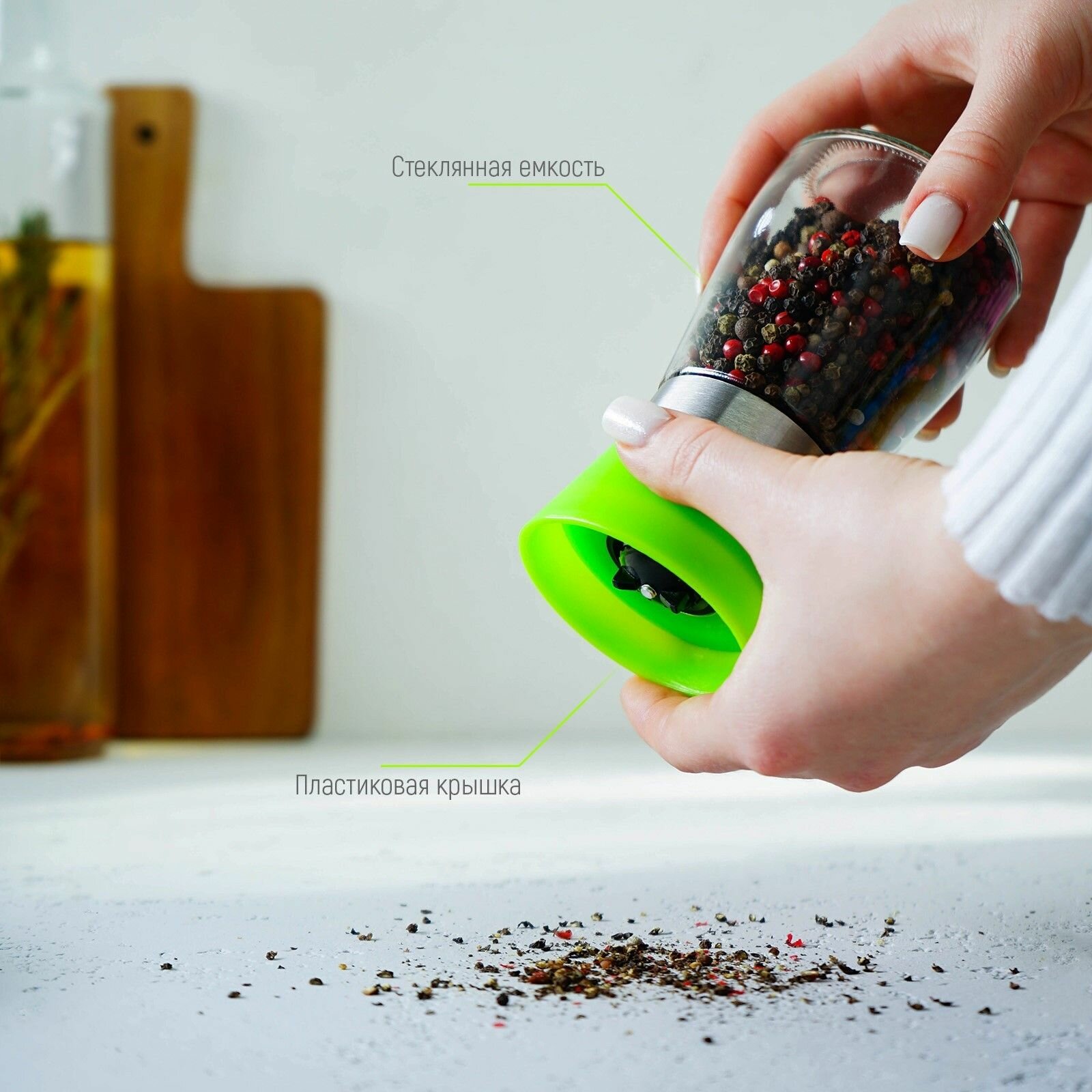 Купить Мельница для специй Доляна «Модерн», 180 мл, 6,5×13 см, цвет зелёный