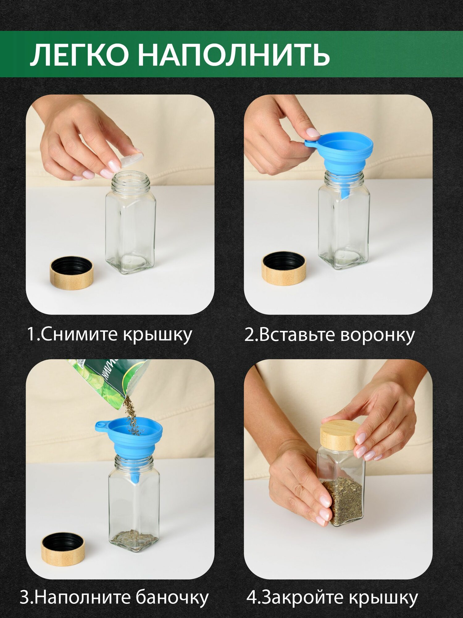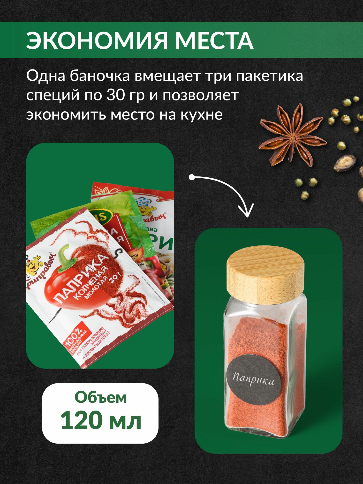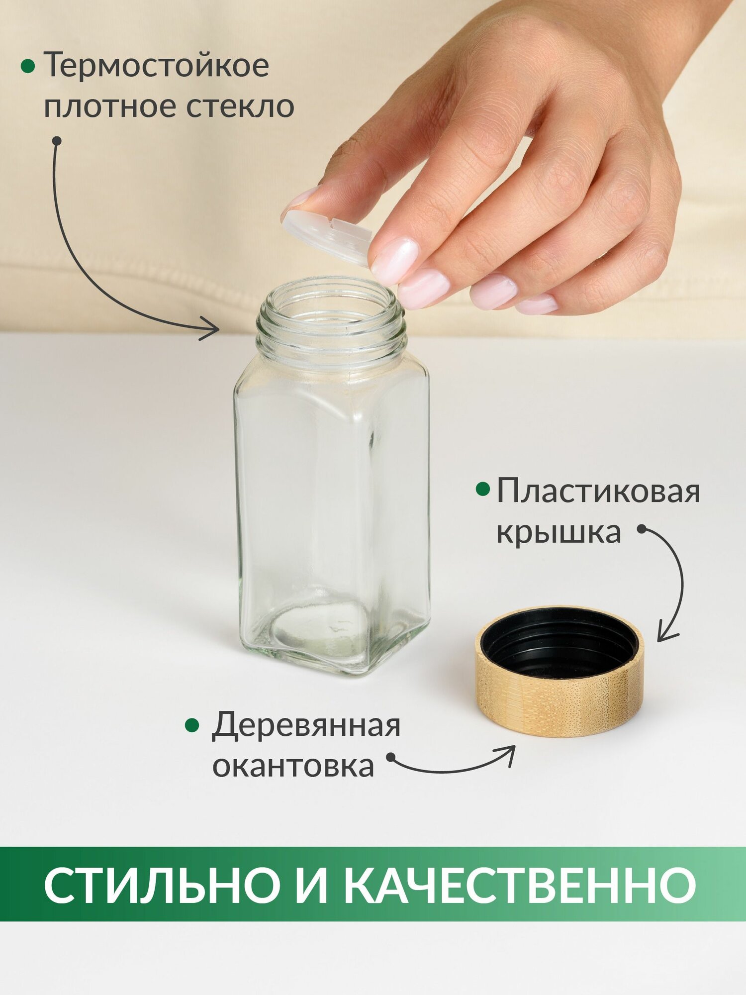 | Дополнительная информация | Комплектация: Стеклянные баночки для специй – 12 шт., Маркер – 1 шт., Воронка – 1 шт., Наклейки – 12 шт. |
