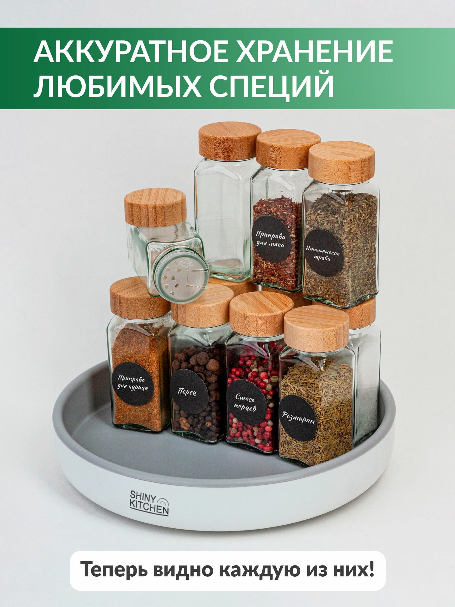 Купить Баночки для специй стеклянные, вращающийся поднос Shiny Kitchen