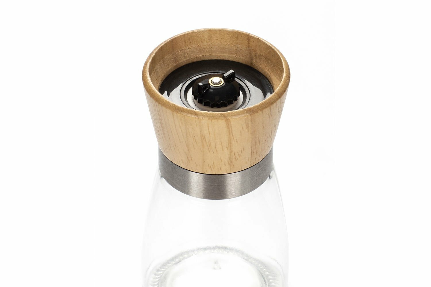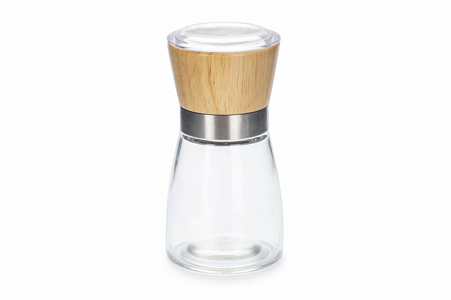 Мельница для специй, соли и перца SPICE WOOD, 175 мл, 4 уровня помола, прозрачная/дерево