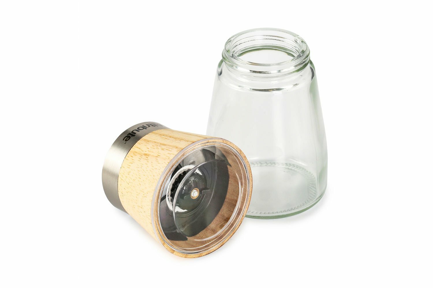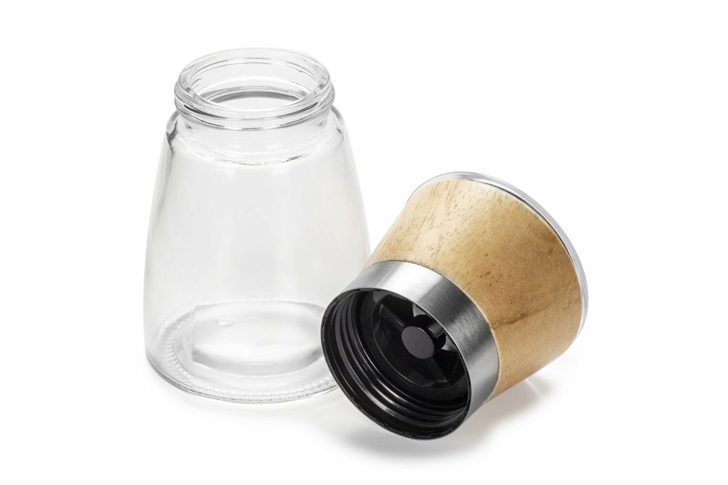 Набор из мельниц для специй, соли и перца - 2 шт, SPICE WOOD, 175 мл, 4 уровня помола, прозрачная/дерево