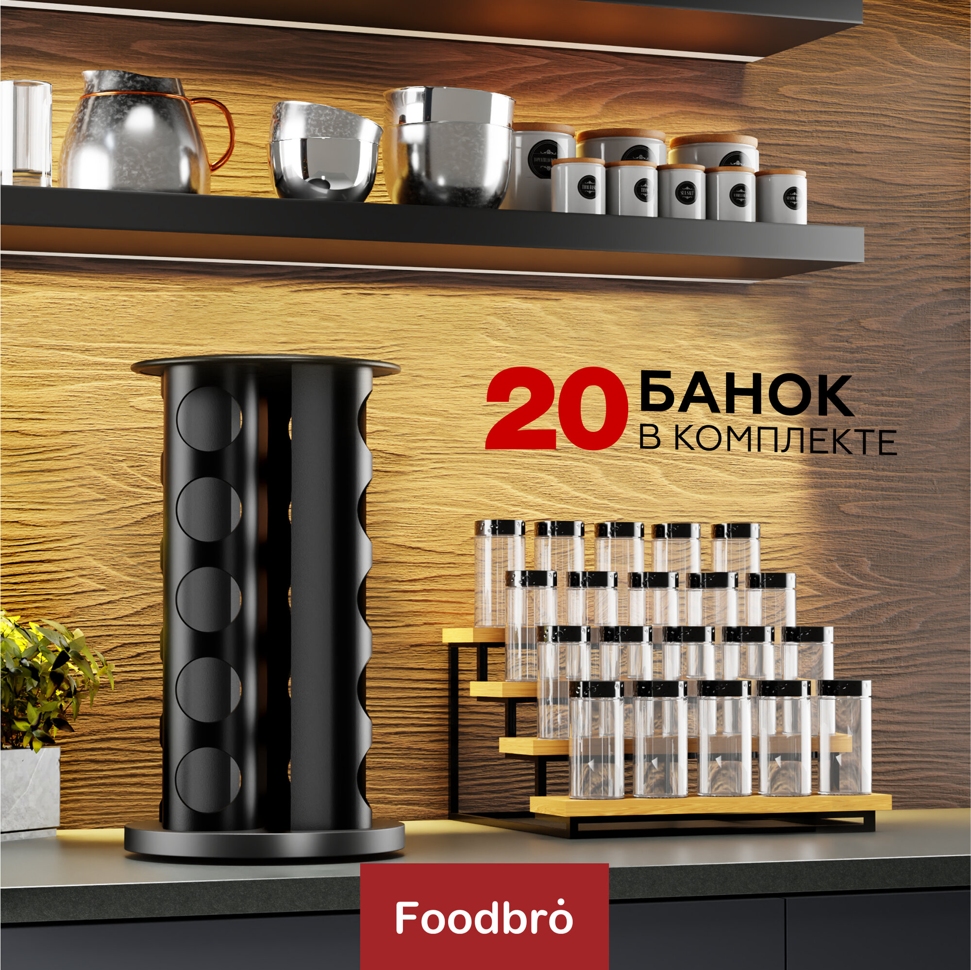 Набор для специй, Солонка, Баночки для сыпучих продуктов, 20 шт по 100 мл Foodbro (Черный)
