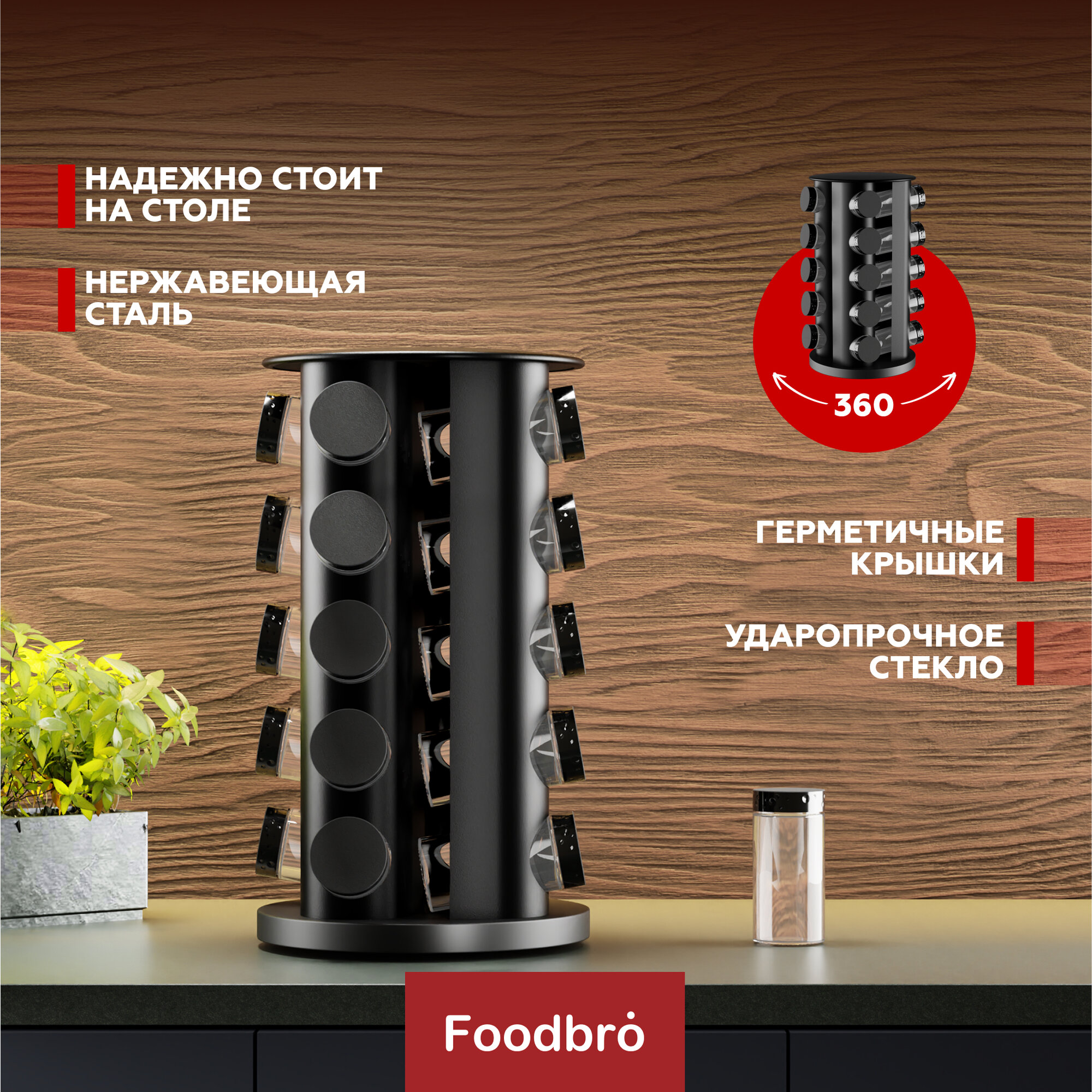 Классический набор для специй на подставке, 12 шт по 100 мл Foodbro (Черный)