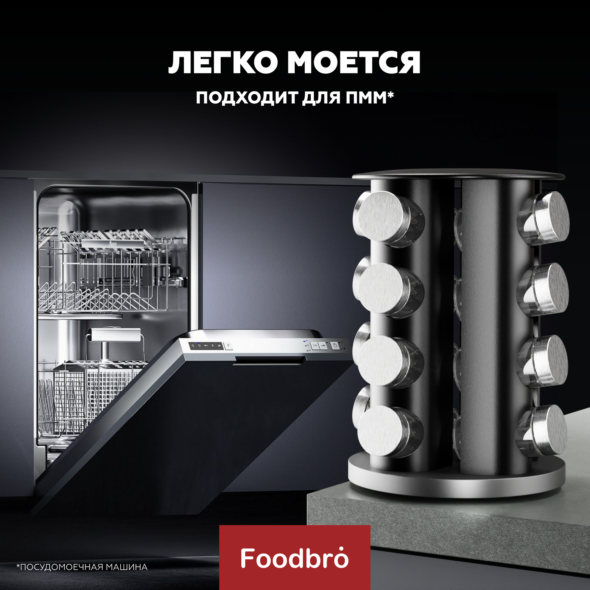 Классический набор для специй на подставке, 12 шт по 100 мл Foodbro (Черный)