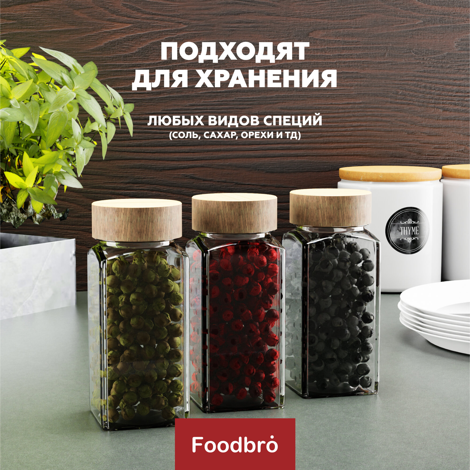 Набор стеклянных емкостей для специй Foodbro 12 шт по 120мл