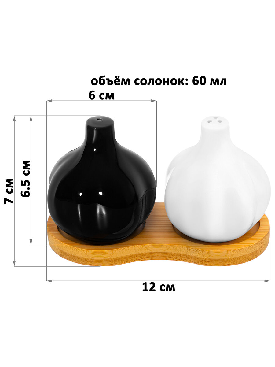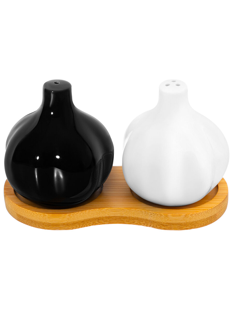 Купить Набор для специй 2 предмета 12х6х7 см Elan Gallery Чеснок, на деревянной подставке