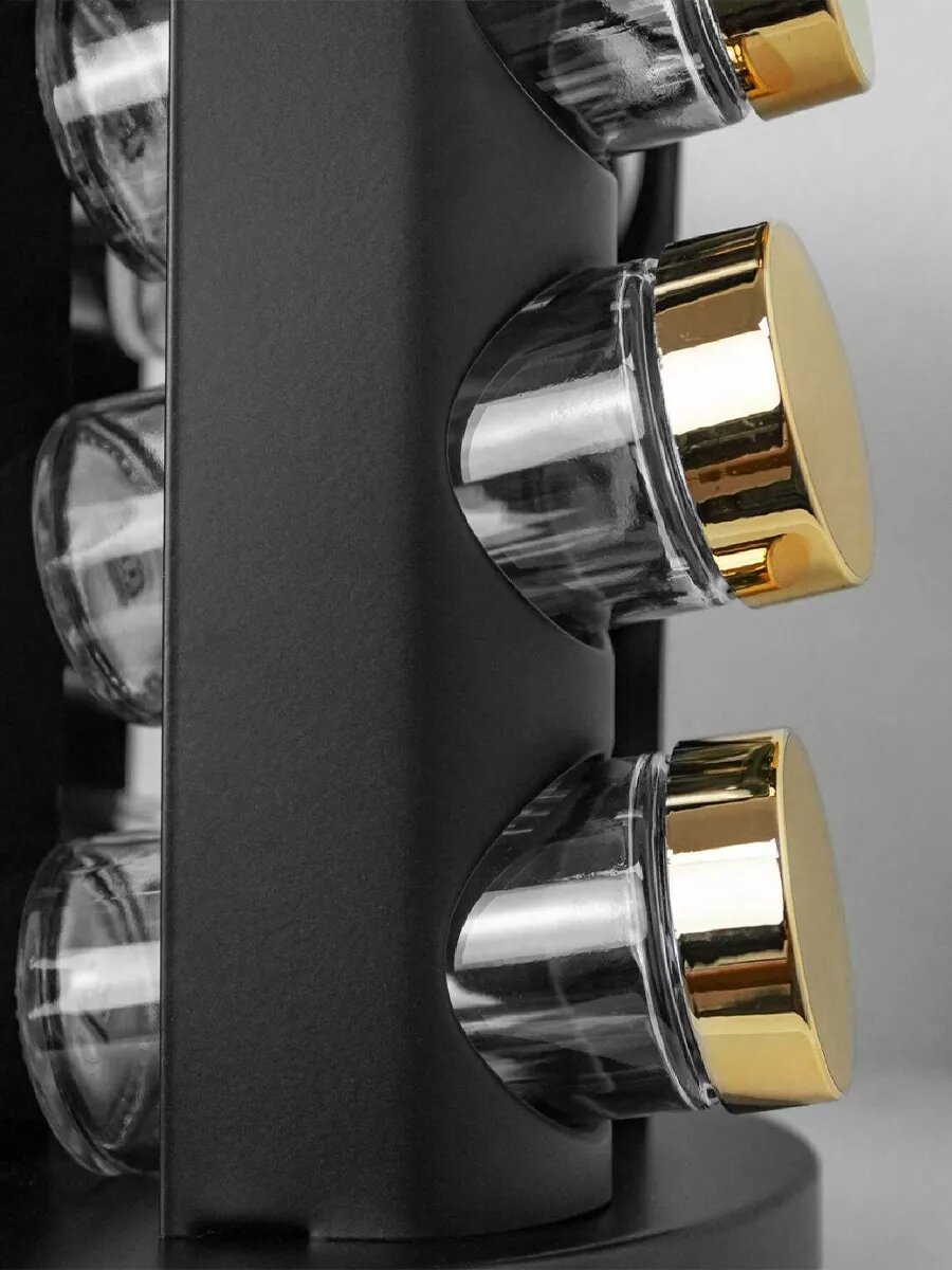 Набор стеклянных баночек из 12 шт на вращающейся подставке круглый черный-золото интересное: