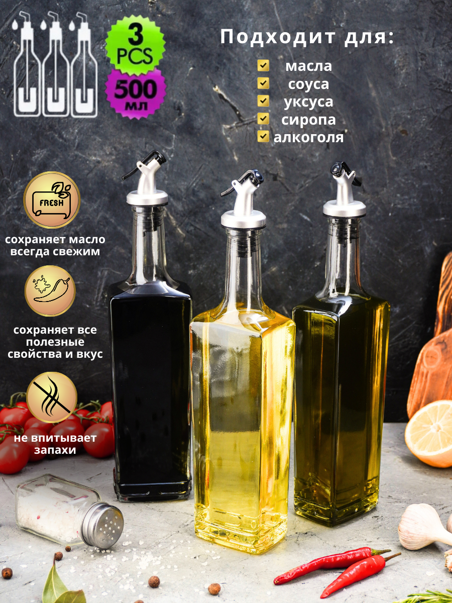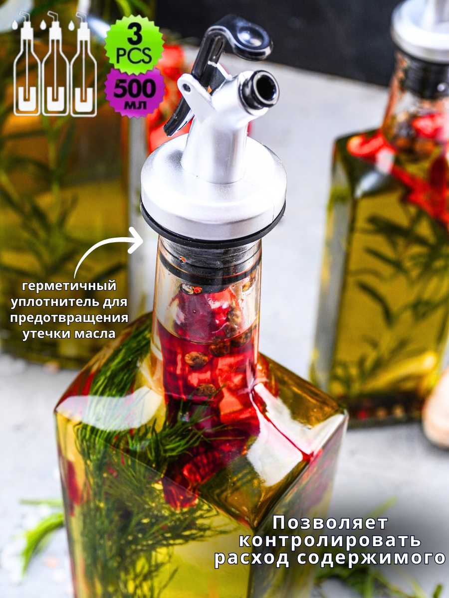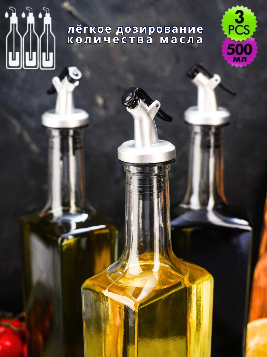 Купить Бутылка для масла и уксуса стекло с дозатором 500 мл. 3 шт. LarangE