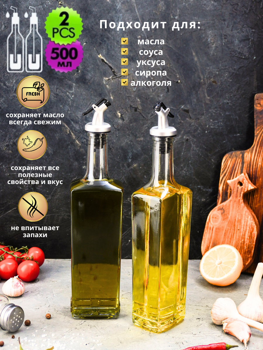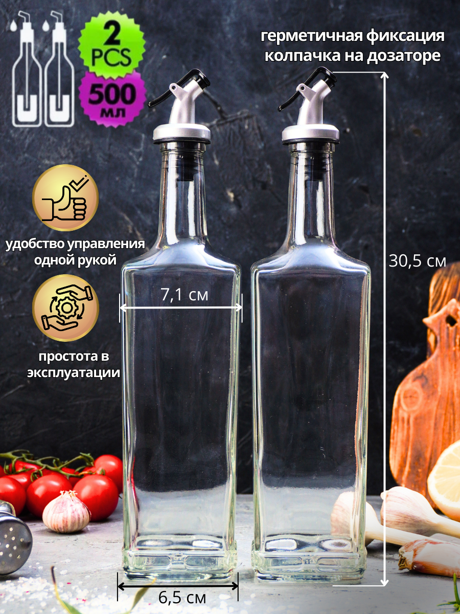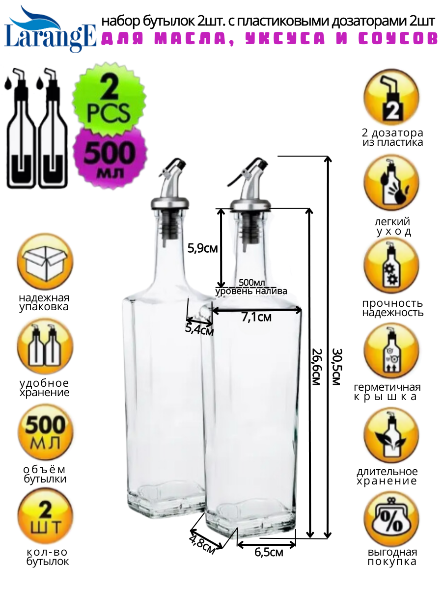 Купить Бутылка для масла и уксуса стекло с дозатором 500 мл. 2 шт. LarangE