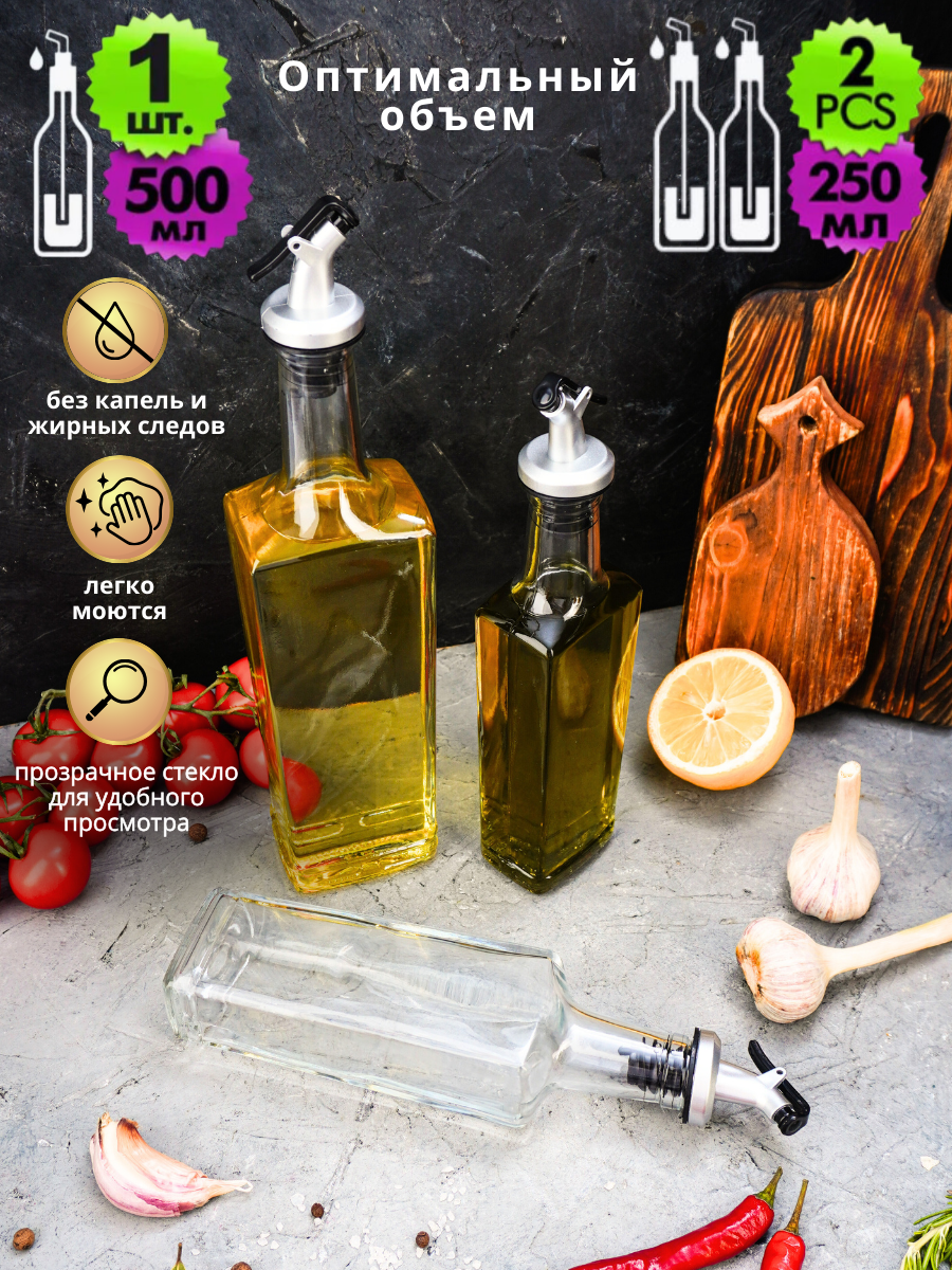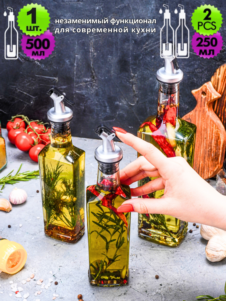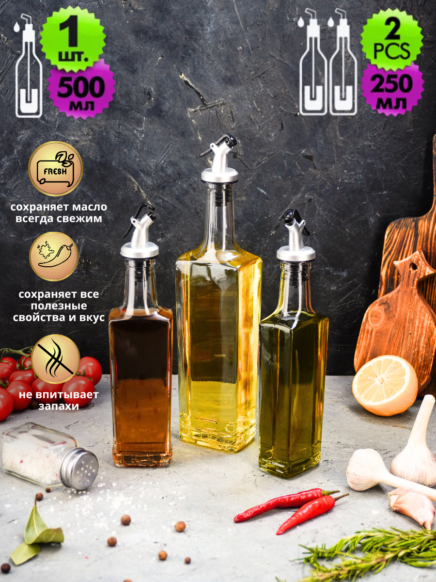 СохранитьНабор бутылок для масла и уксуса стекло с дозатором LarangE (500 мл - 1 шт, 250 мл - 2 шт) интересное: