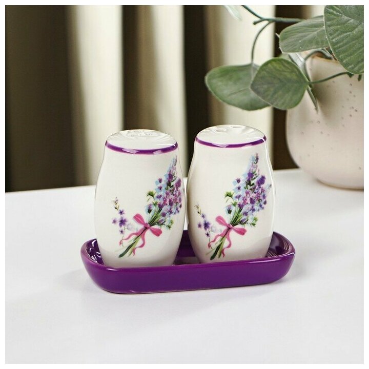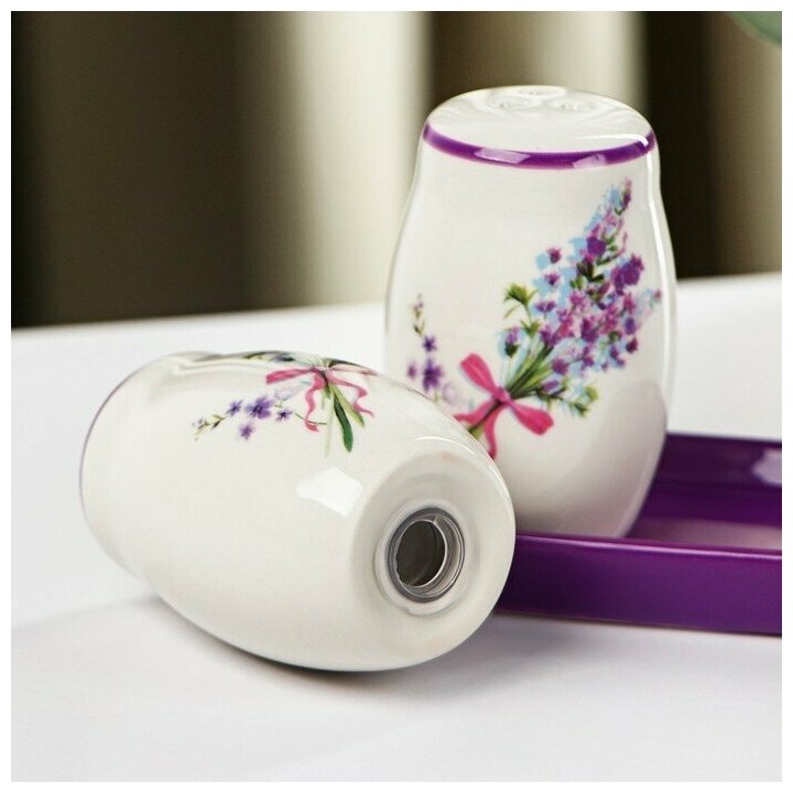 Набор для специй Доляна «Лаванда», 2 предмета: солонка, перечница, 130 мл интересное: