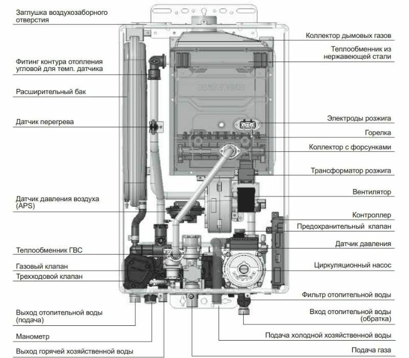 | Материал первичного теплообменника | медь |