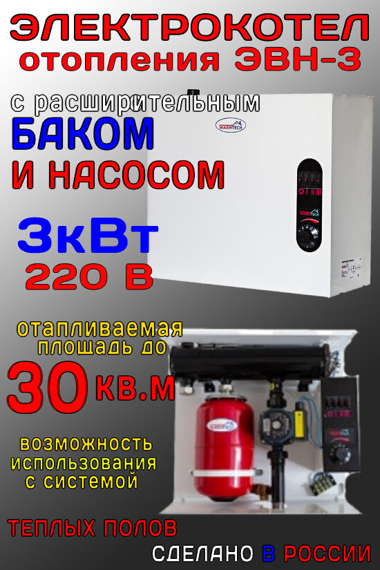 Котел отопления электрический ЭВН-3 со встроенным баком и насосом интересное: