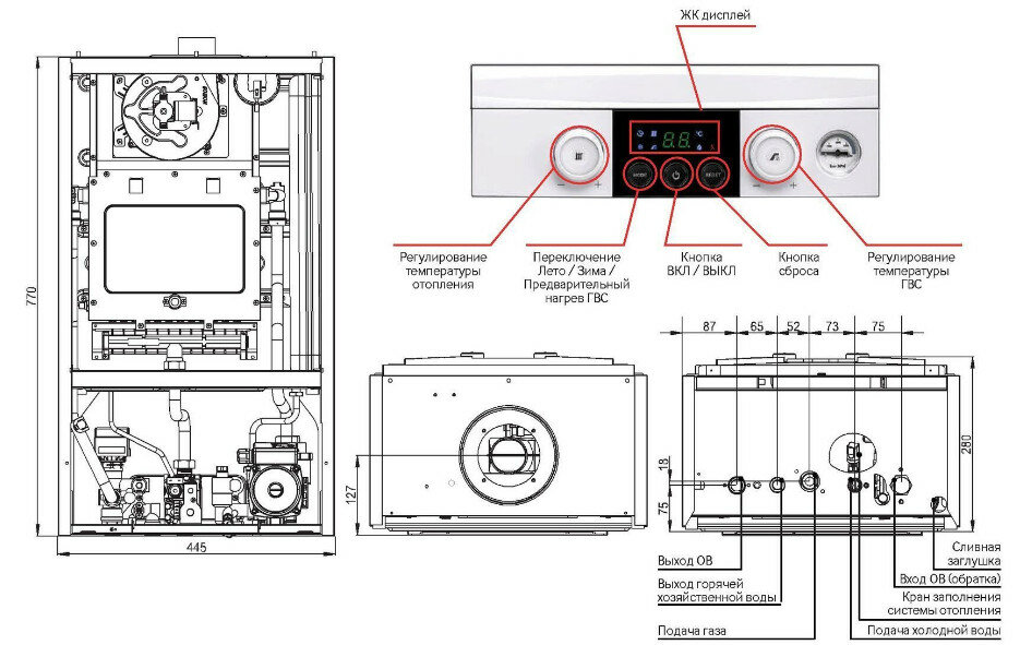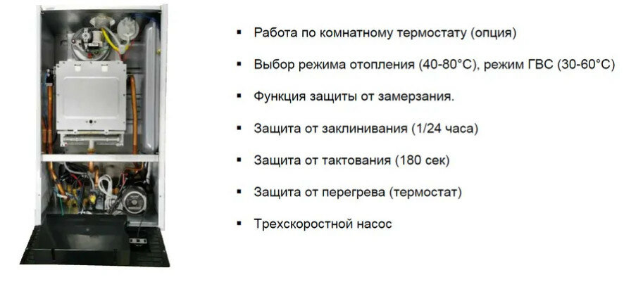 | Особенности | воздухоотводчик, встроенный расширительный бак, манометр, предохранительный клапан, термометр, фильтр для воды |