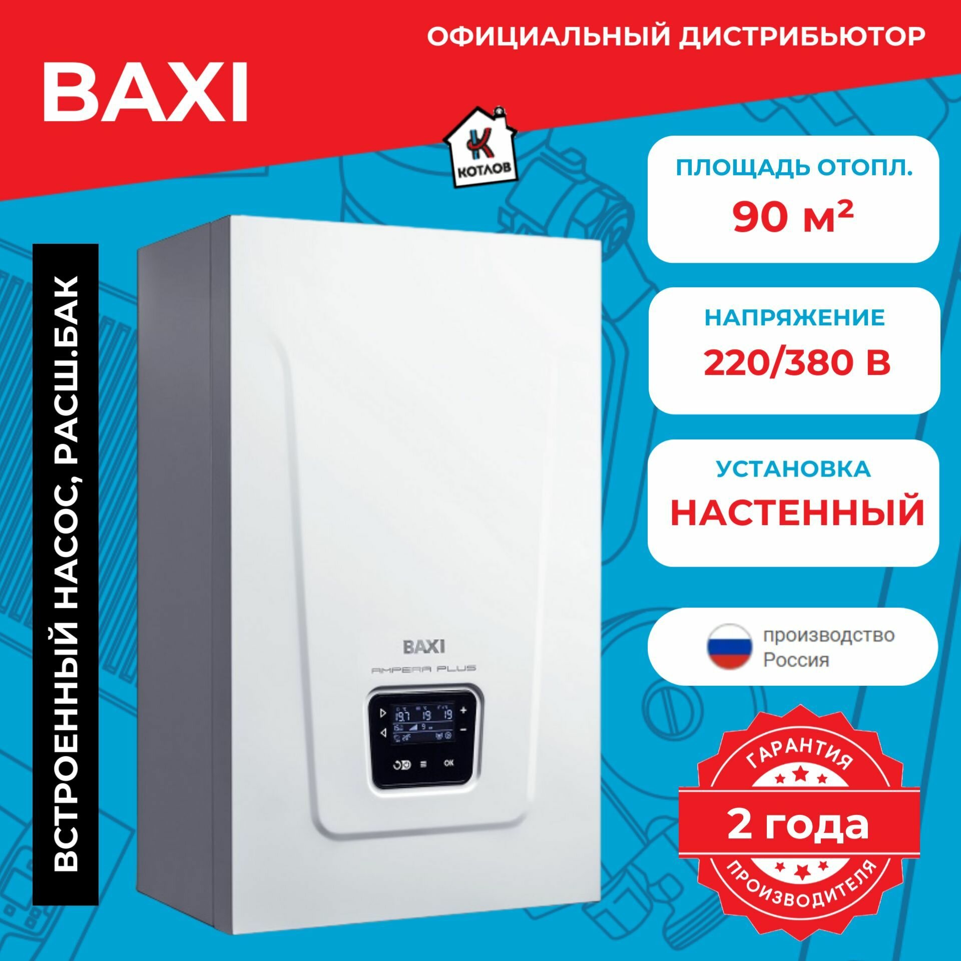 Котёл электрический настенный Ampera Plus 6, 6 кВт Baxi