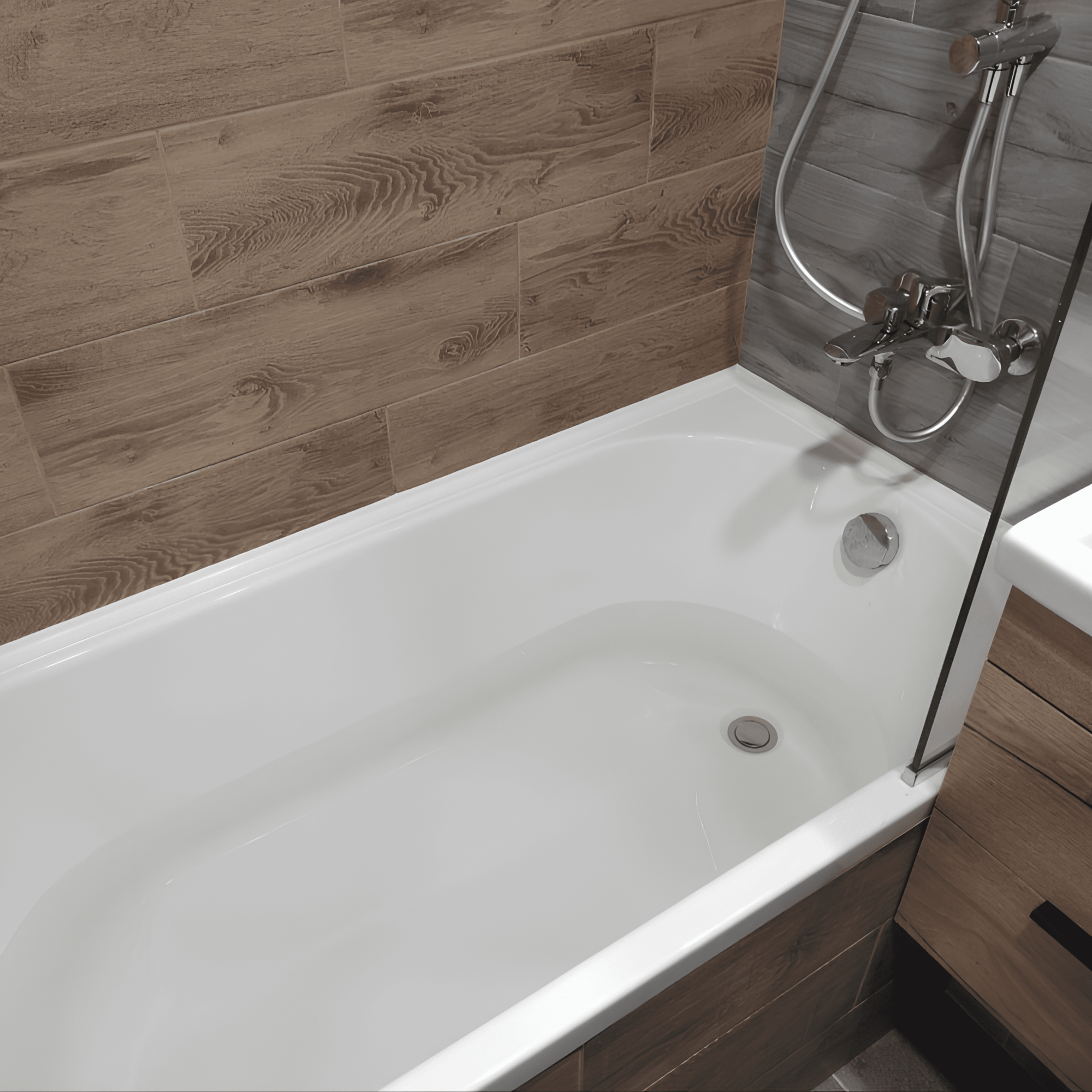 Акриловый бордюр для ванной BNV ГЛ12 90 сантиметров, белый цвет, BNV глянцевая поверхность