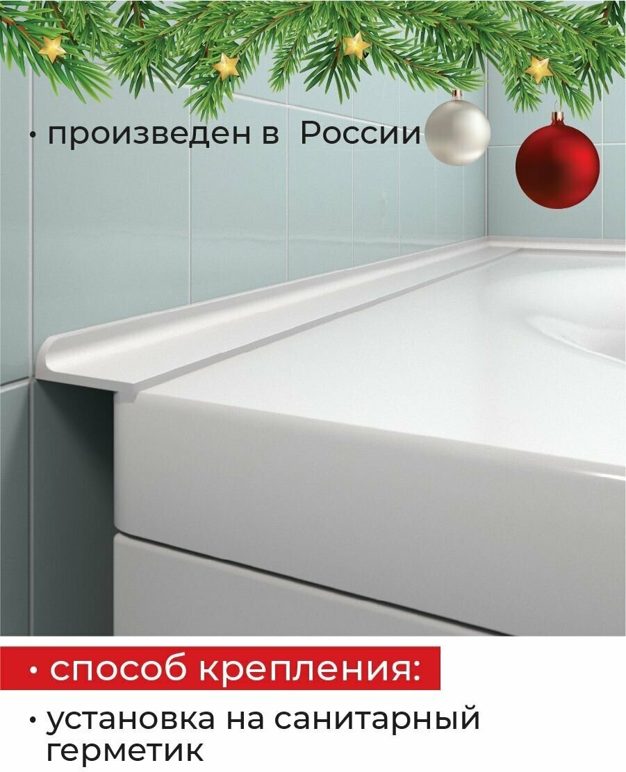 Акриловый плинтус бордюр для ванной BNV ГЛ24 75 сантиметров правая сторона, белый цвет, BNV глянцевая поверхность
