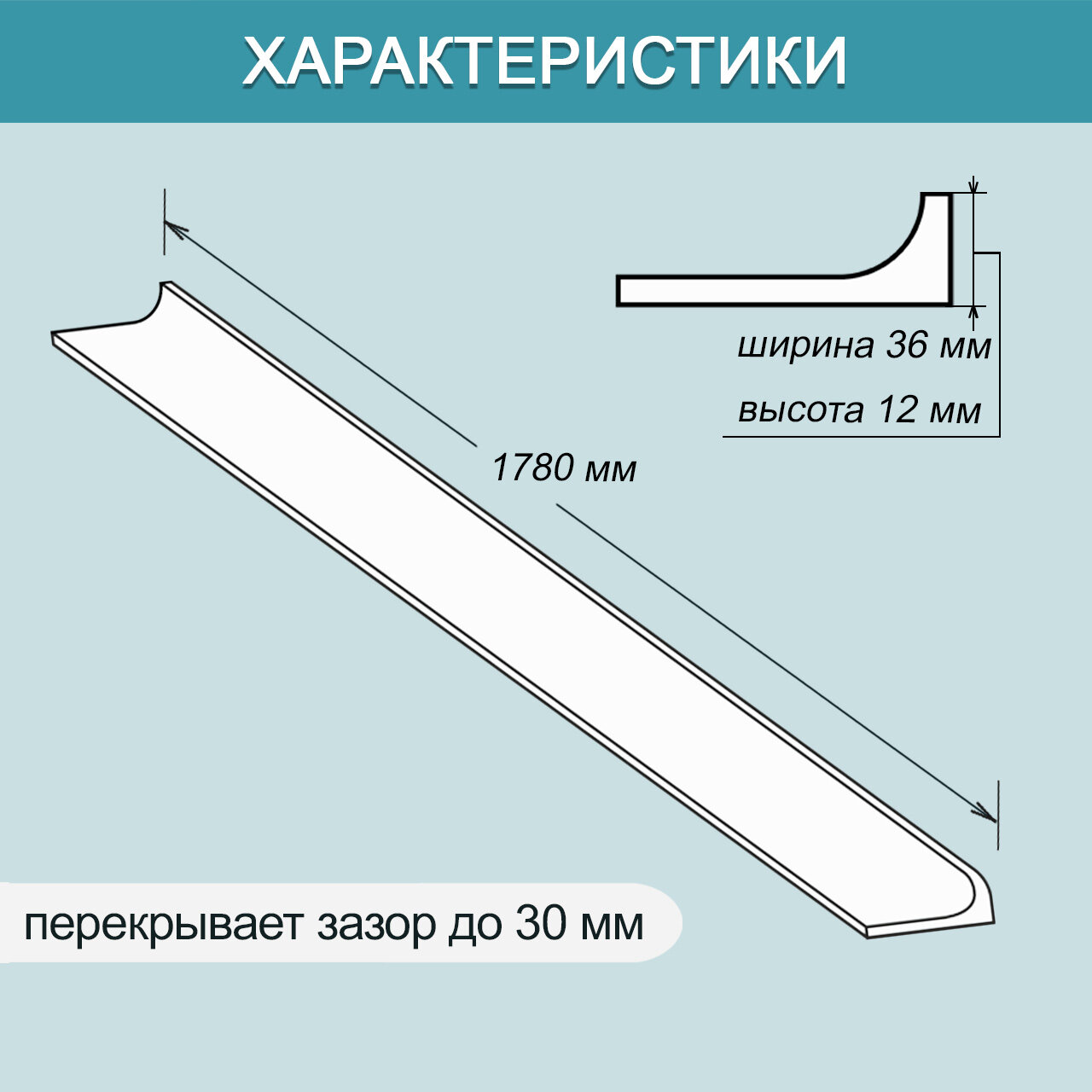 Акриловый плинтус бордюр для ванной BNV ГЛ36 75 сантиметров правая сторона, белый цвет, BNV глянцевая поверхность