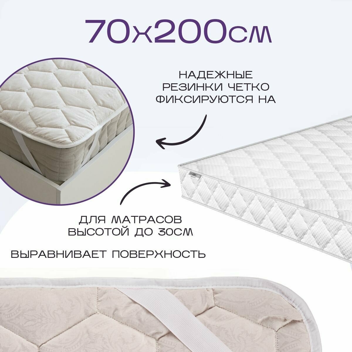 Купить Наматрасник-топпер на резинке стеганный защитный на матрас, кровать, диван овечья шерсть 70х200
