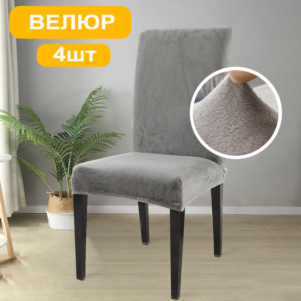Чехлы на стулья со спинкой 4 шт для кухни велюр,универсальные 40-60cm, Серый интересное: