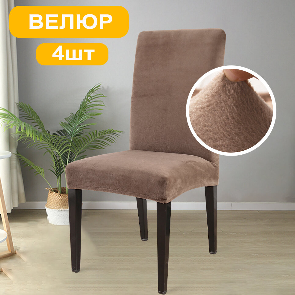 Чехлы на стулья со спинкой для кухни велюр,4 шт, кофе