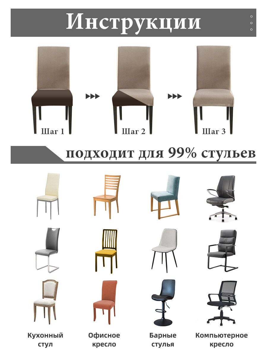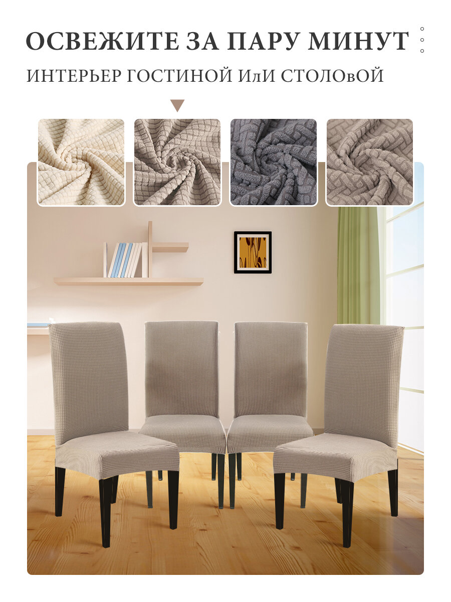 Чехлы на стулья со спинкой 4 шт для кухни жаккард,универсальные 40-60cm, Светло-коричневый интересное: