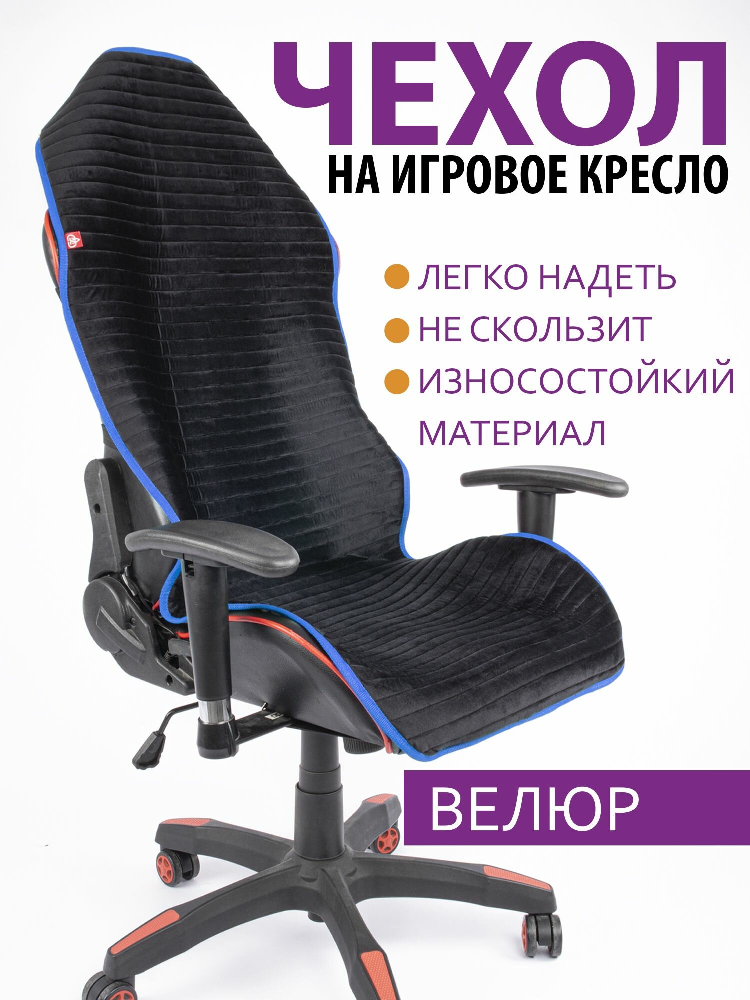 Купить Чехол (накидка) для компьютерного игрового кресла черный с синим кантом