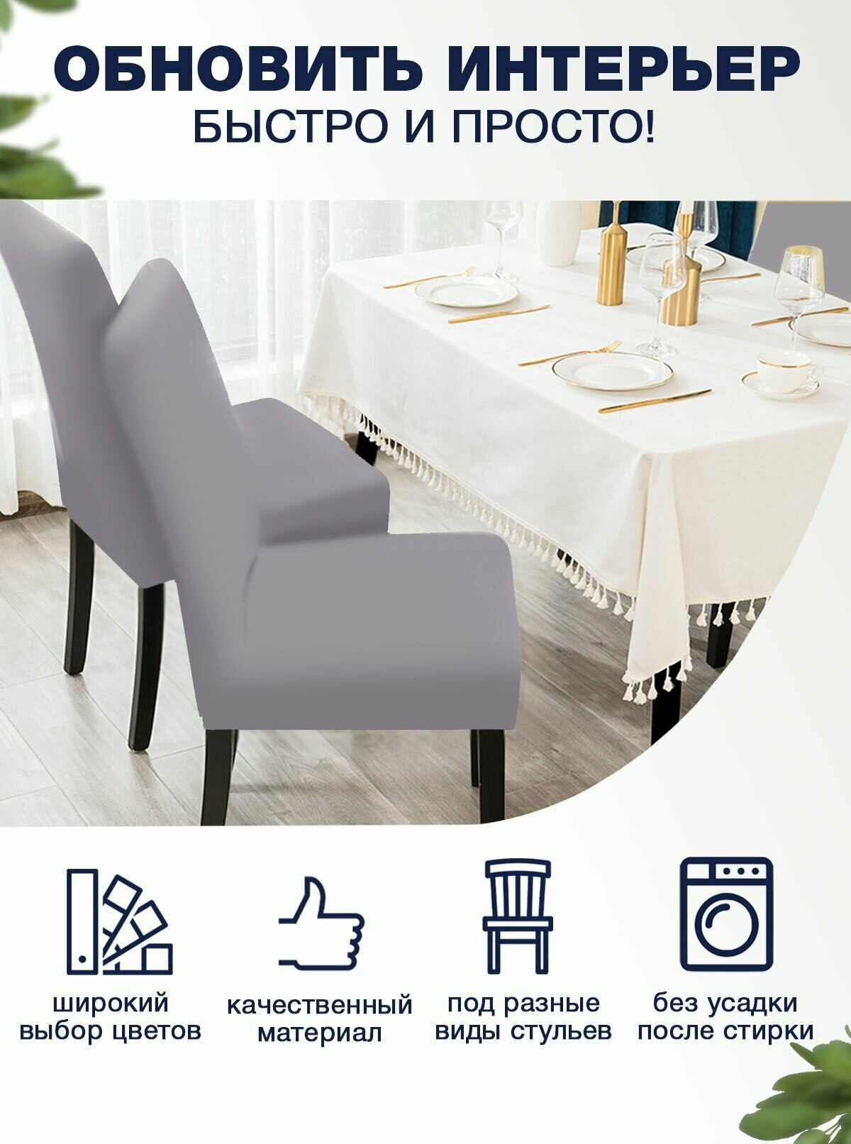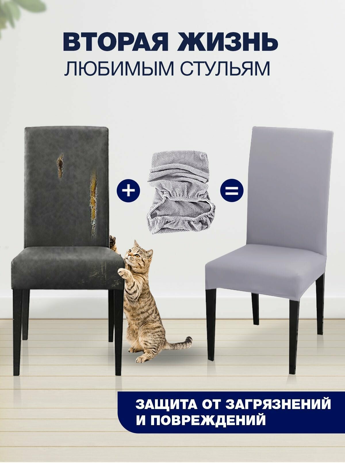 СохранитьЧехол на стул, чехол для стула со спинкой, Комплект 2 шт, чехлы для мебели, Коллекция "Jersey" Серый интересное:
