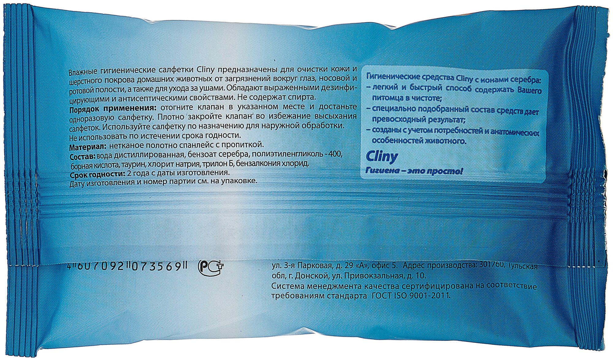 Cliny ® Салфетки влажные гигиенические для собак и кошек упаковка, 10 шт