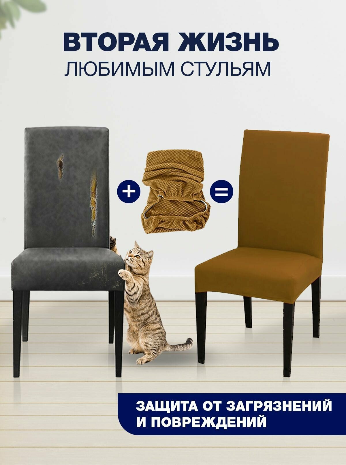 Чехол на стул, чехол для стула со спинкой, Комплект 4 шт, чехлы для мебели, Коллекция "Jersey" Светло-коричневый