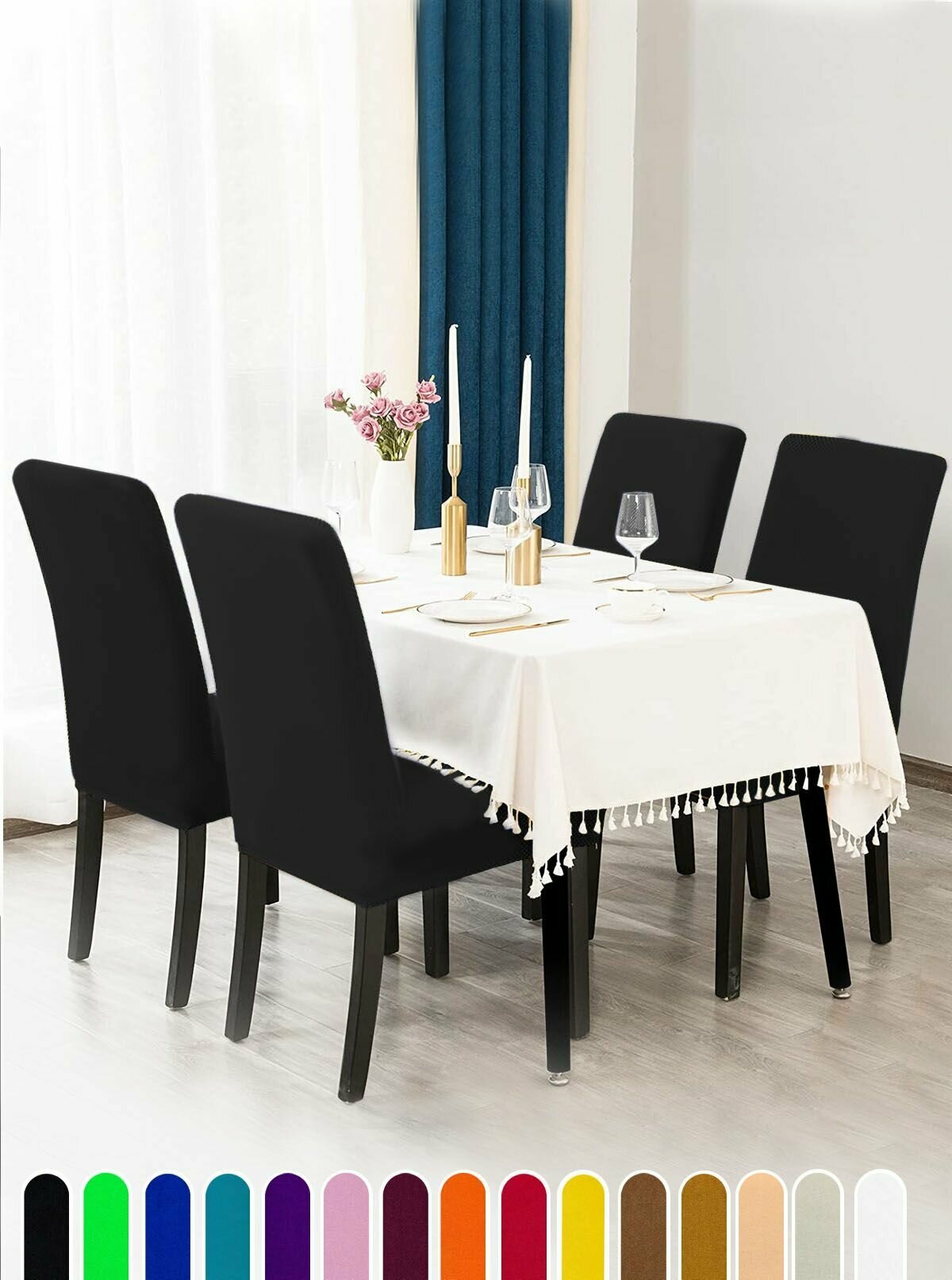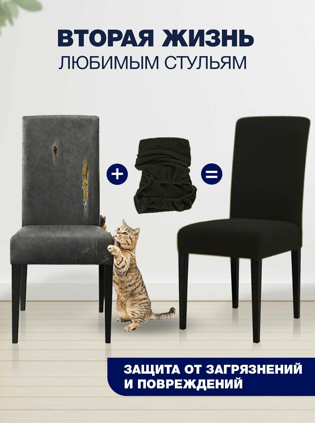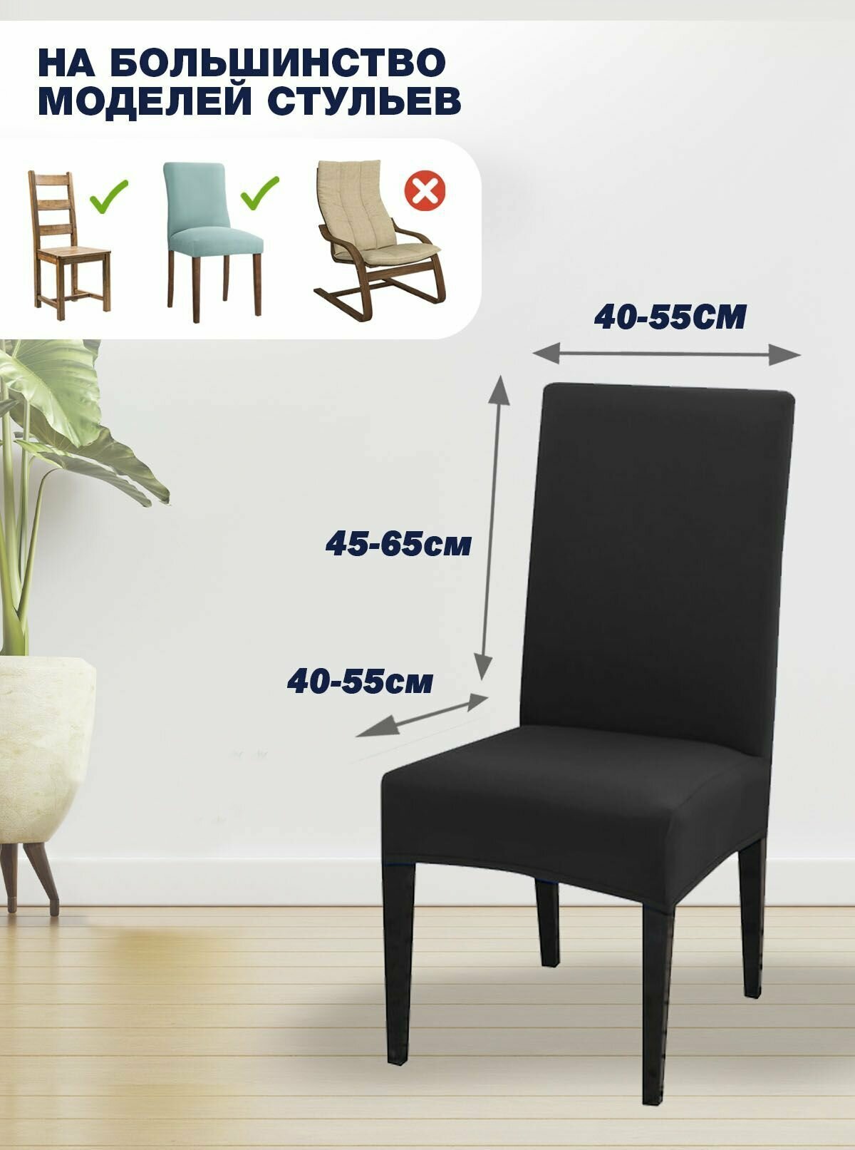 Чехол на стул, чехол для стула со спинкой, Комплект 4 шт, чехлы для мебели, Коллекция "Jersey" Черный