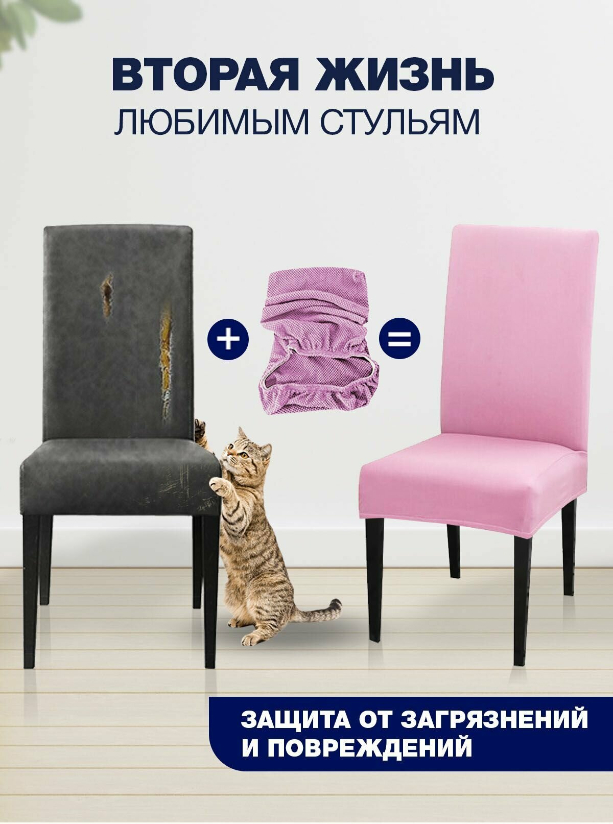 СохранитьЧехол на стул, чехол для стула со спинкой, чехлы для стульев, Коллекция "Jersey", Розовый, Комплект 2 шт. интересное: