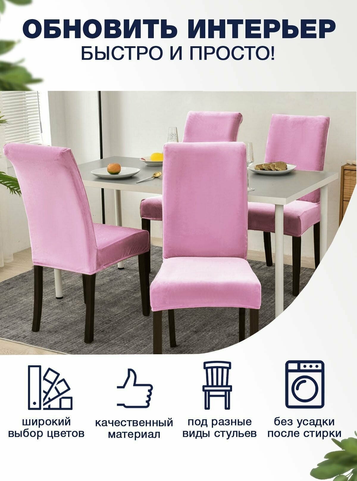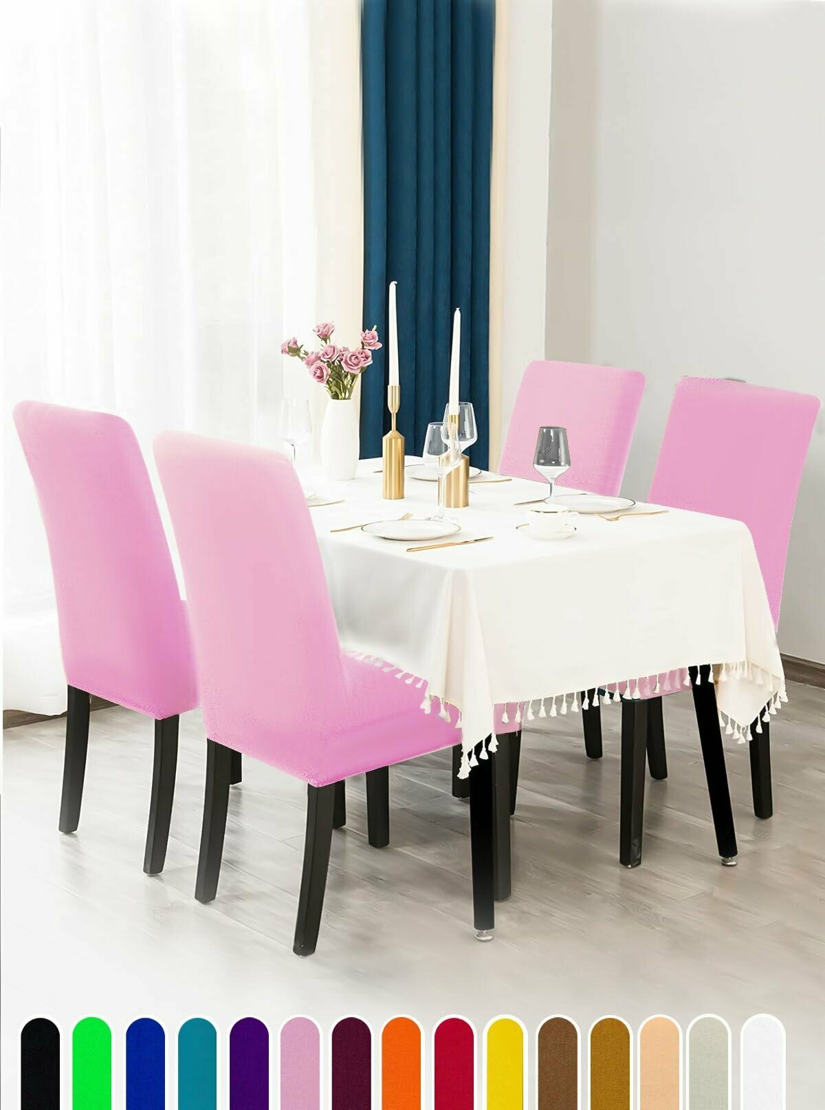 Чехол на стул, чехол для стула со спинкой, чехлы для стульев, Коллекция "Jersey", Розовый, Комплект 4 шт.