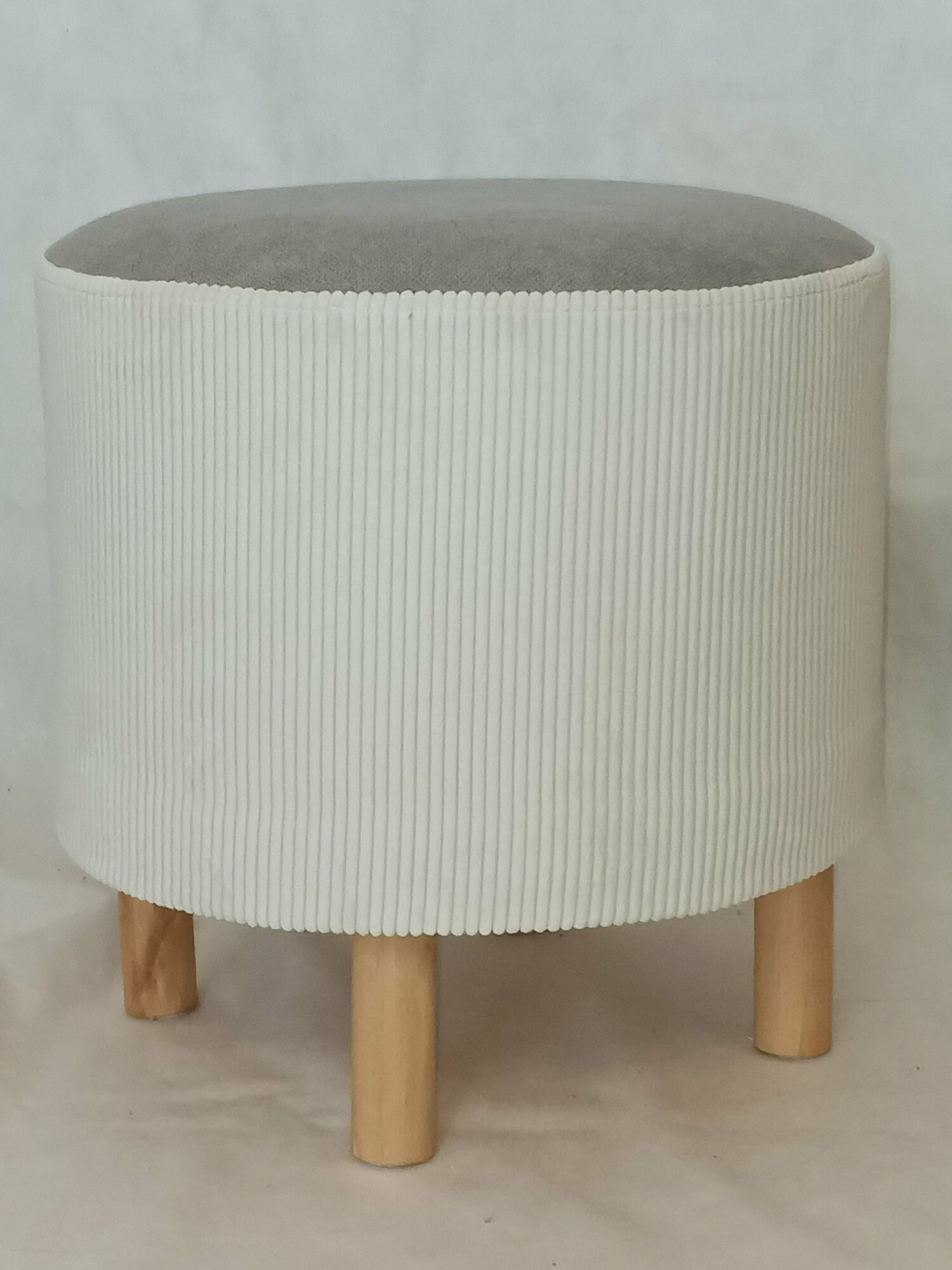Чехол съёмный на Пуфик Круглый 39см, вельвет верх- бежево-серый, низ- белый (сливочный).