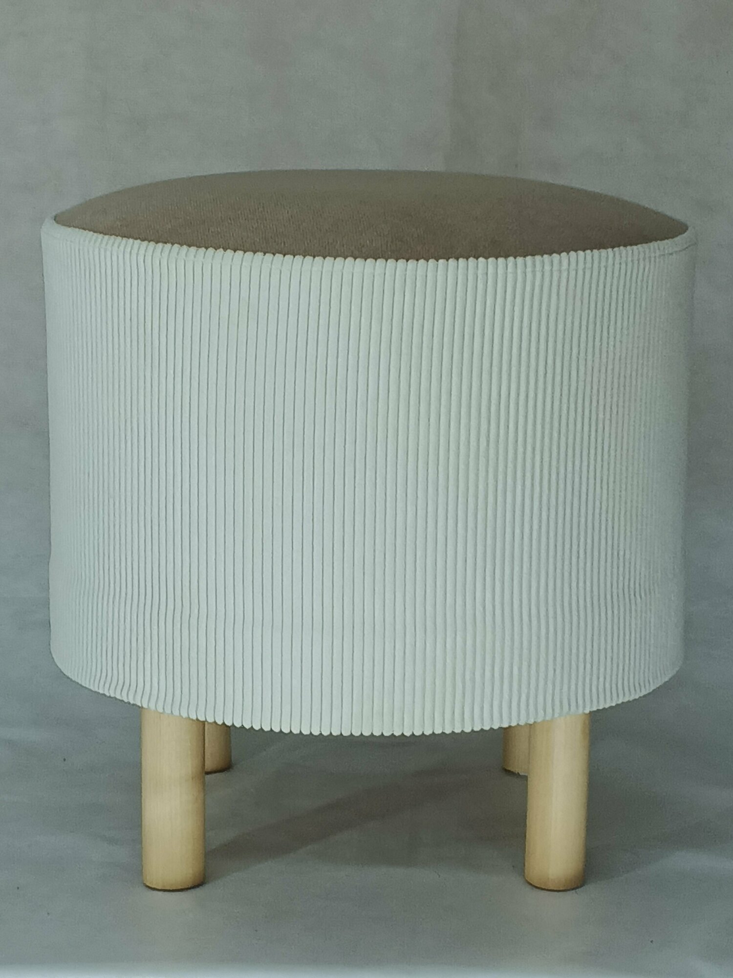 Чехол съёмный на Пуфик Круглый 39см, вельвет верх- бежево-серый, низ- белый (сливочный).