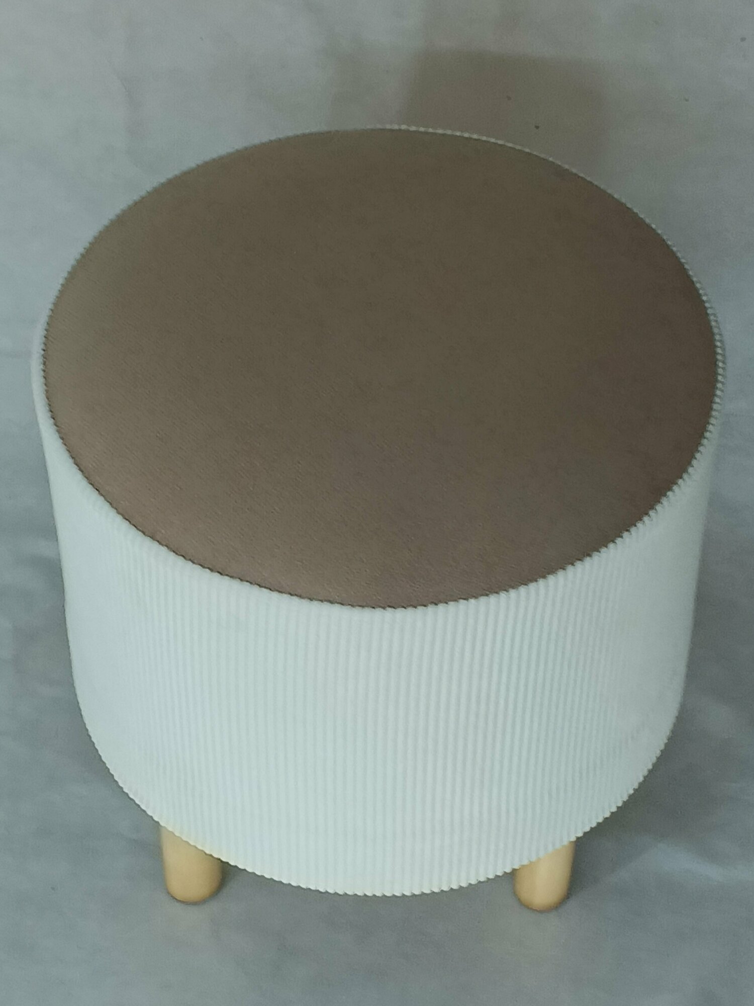 Чехол съёмный на Пуфик Круглый 39см, верх- велюр антивандальный бежевый, низ- вельвет белый (сливочный). интересное: